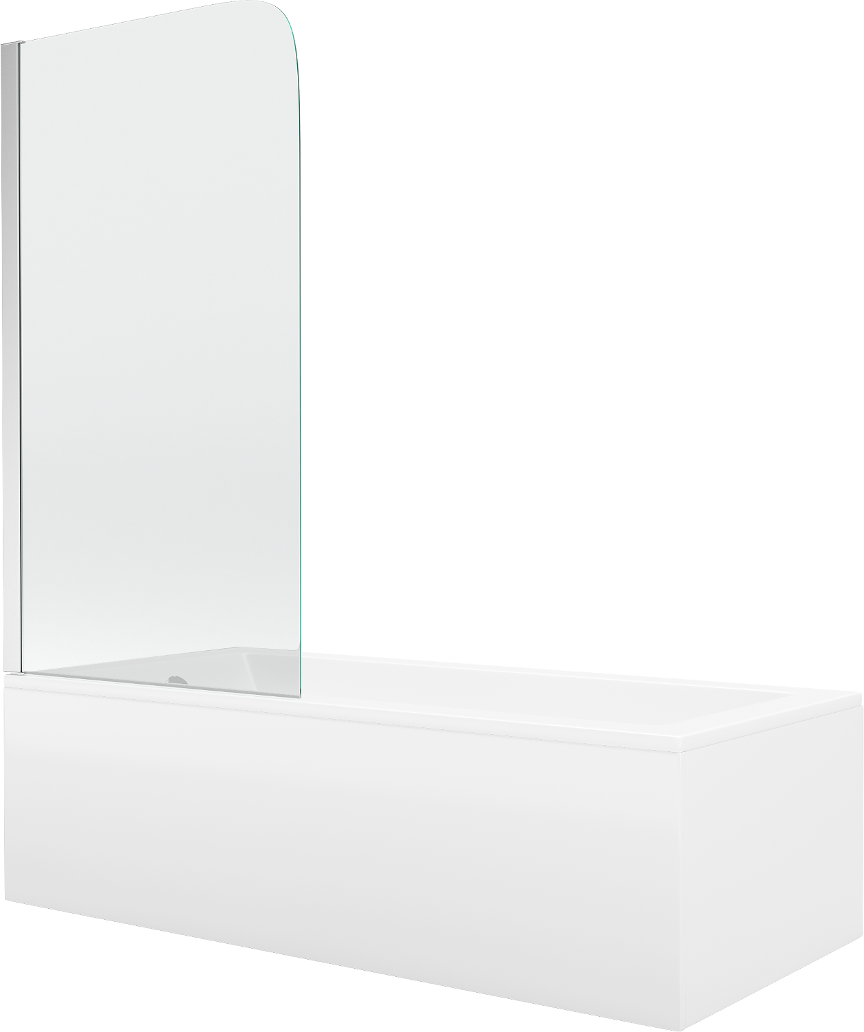 Mexen Cubik Suorakulmainen amme 160 x 70 cm kotelolla ja 1-osaisella suihkuseinällä 70 cm, läpinäkyvä, kromi