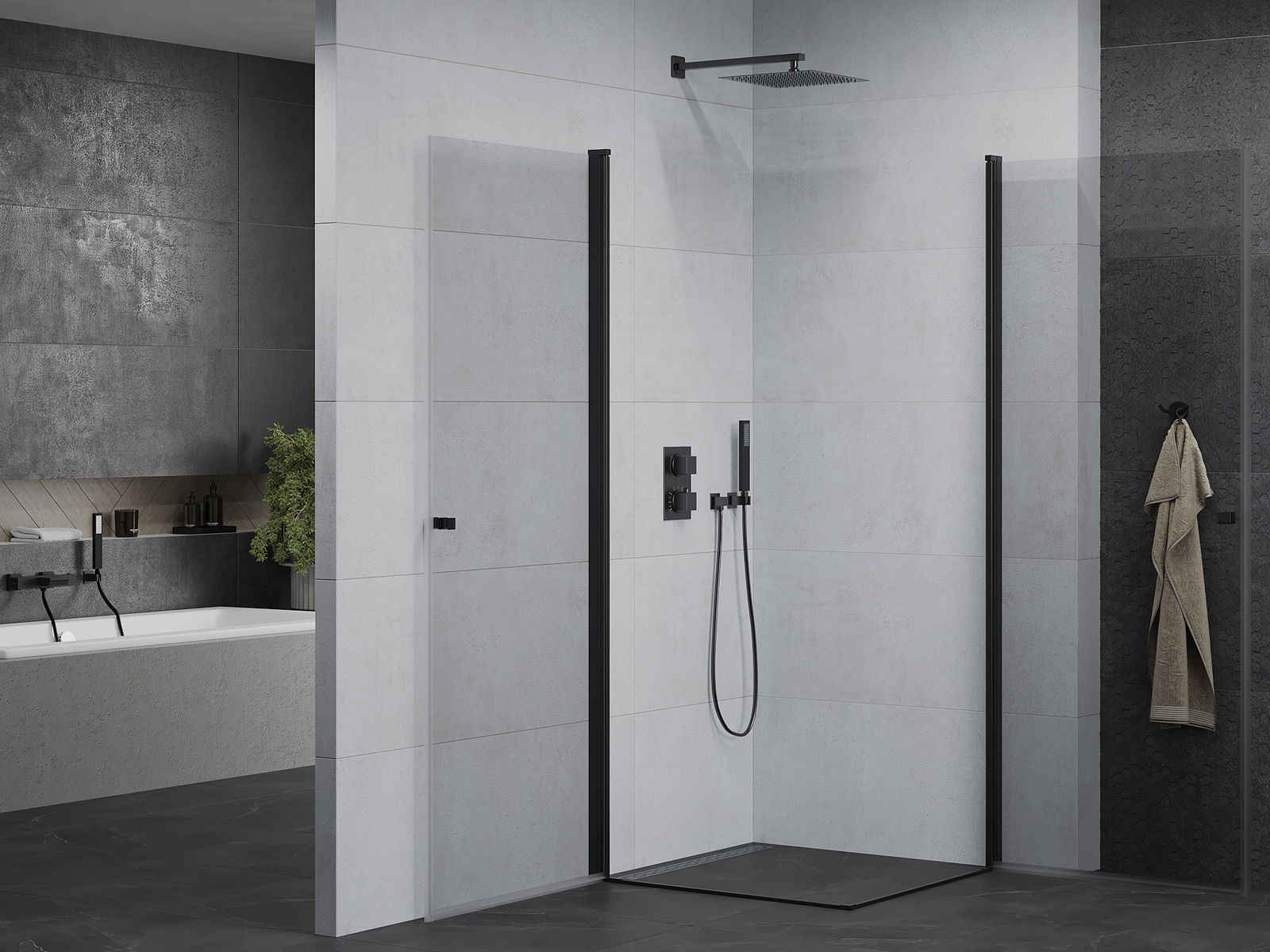 Mexen Pretoria Duo kääntyvä suihkukoppa 90 x 90 cm, läpinäkyvä, musta - 852-090-090-70-00-02