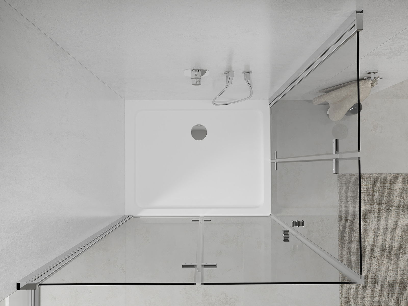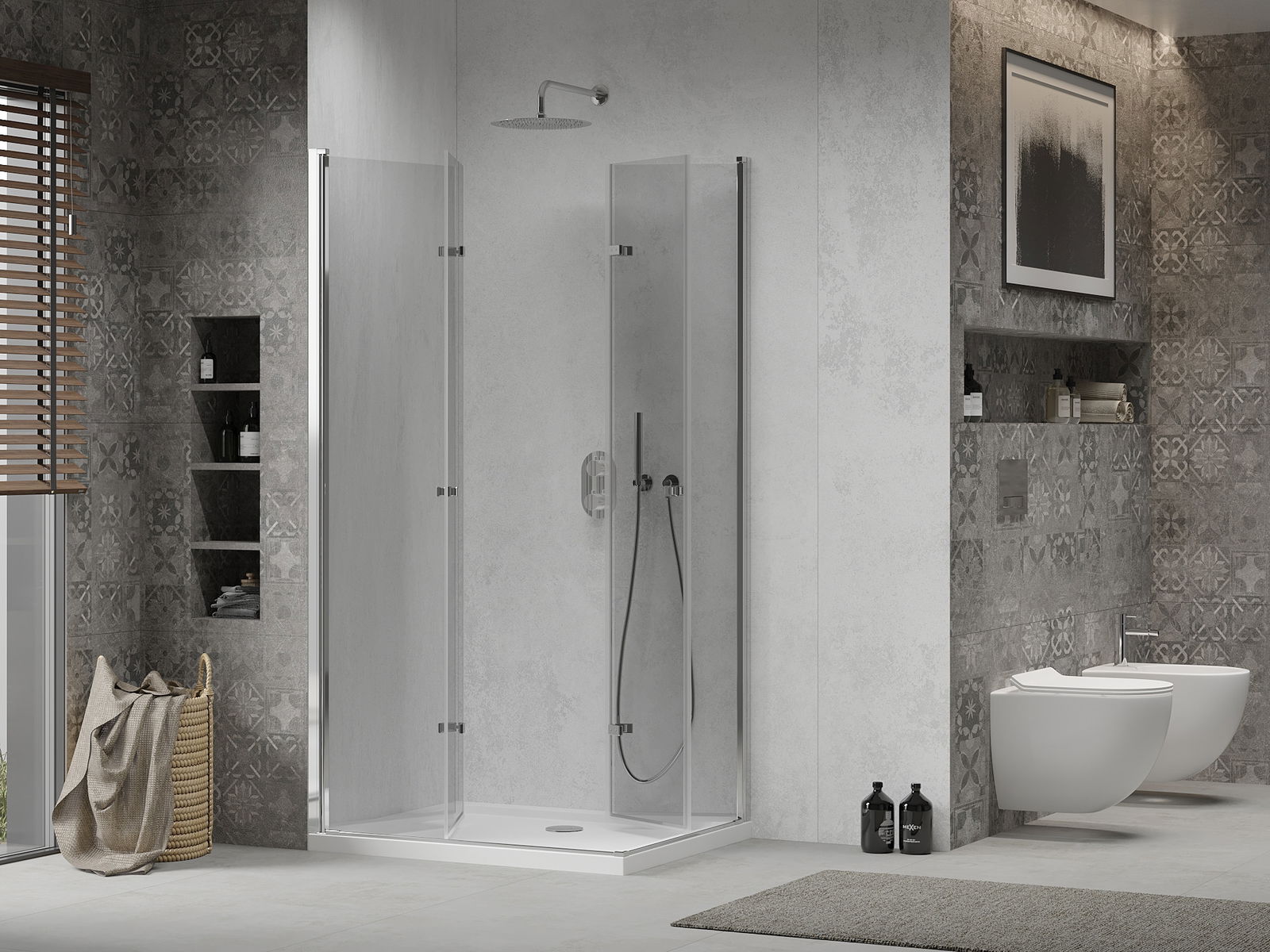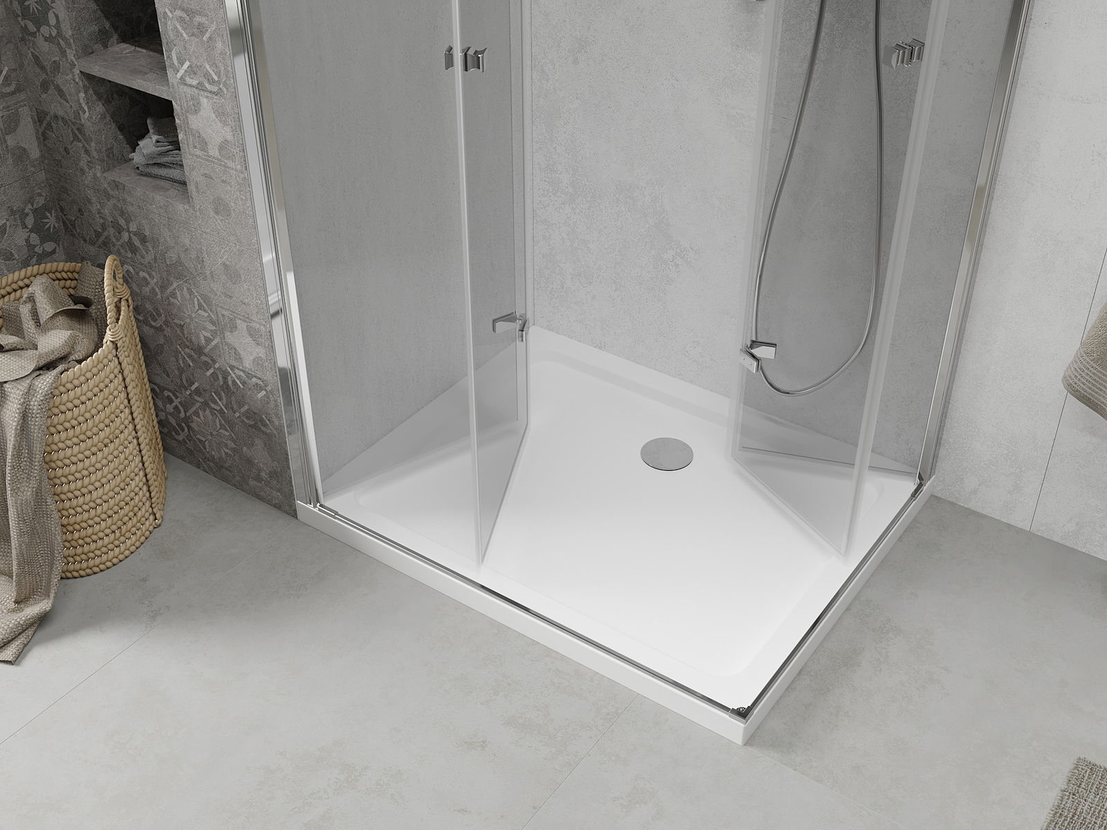 Mexen Lima Duo taitettava suihkukoppi 90 x 80 cm, läpinäkyvä, kromi + Flat-suihkualusta - 856-090-080-01-02-4010