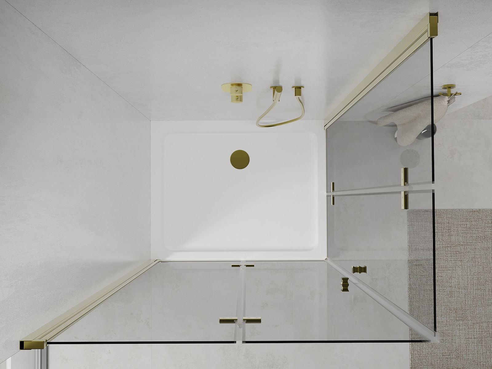 Mexen Lima Duo taittuva suihkukotelo 90 x 80 cm, läpinäkyvä, kulta + Flat suihkuallas - 856-090-080-50-02-4010G
