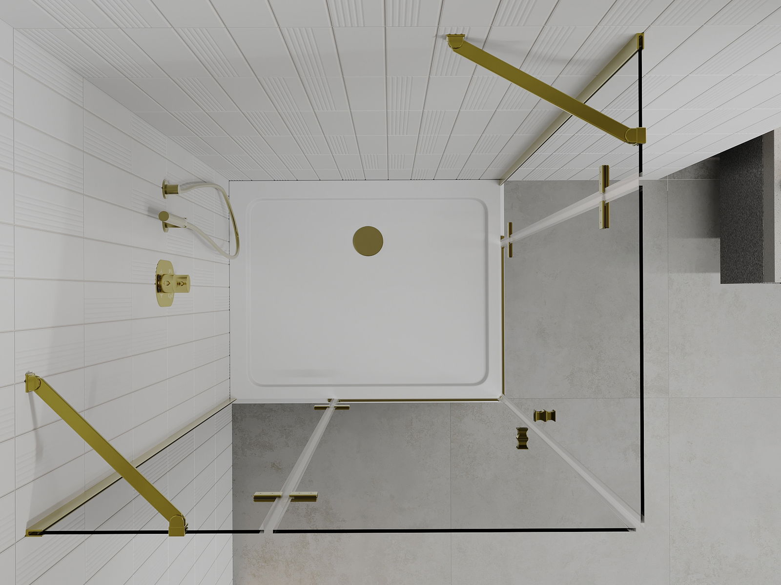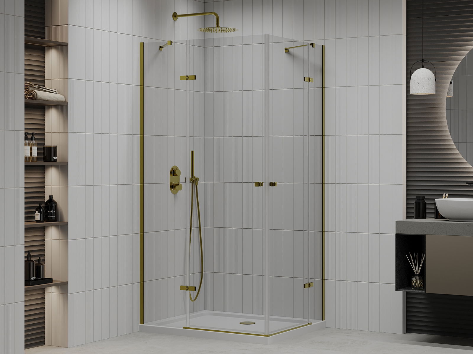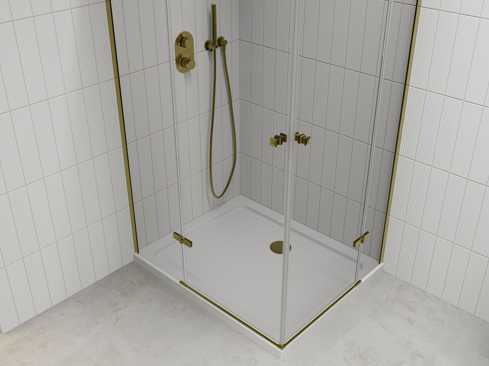 Mexen Roma Duo saranoituva suihkukaappi 80 x 70 cm, läpinäkyvä, kultainen + Flat-suihkualusta - 854-080-070-50-02-4010G