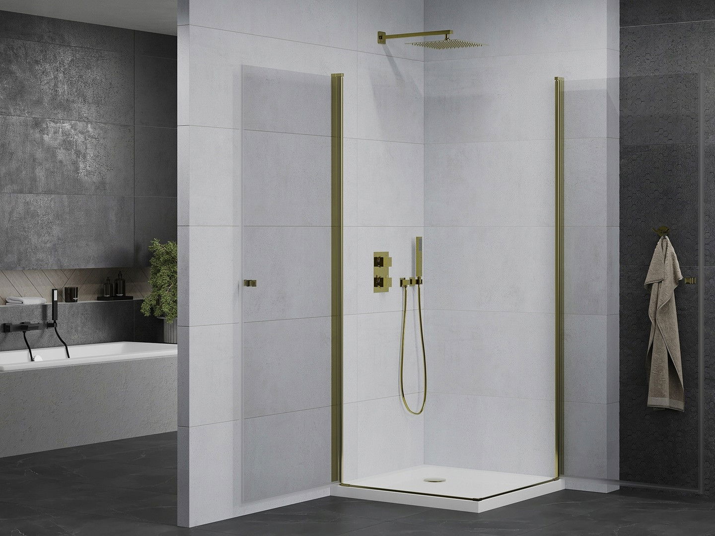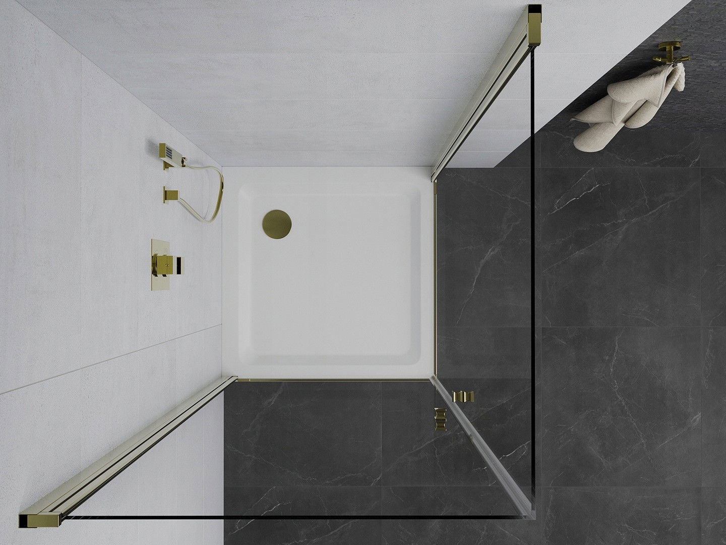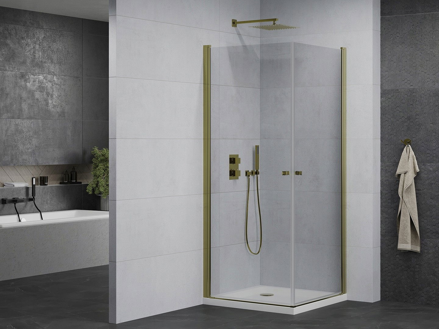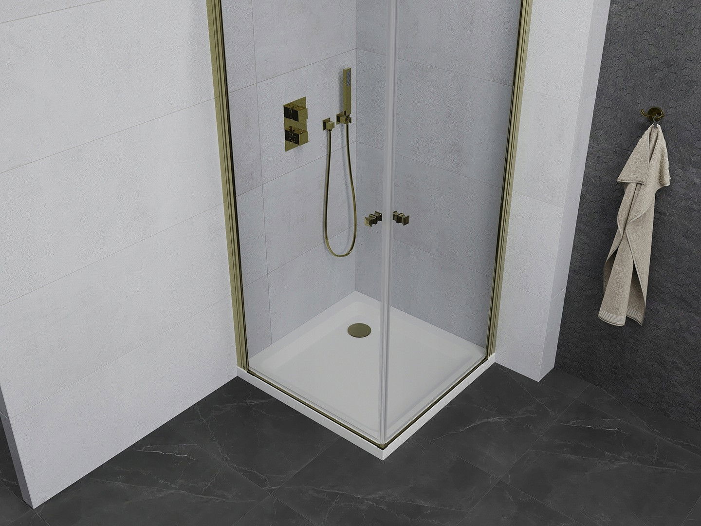 Mexen Pretoria Duo kääntyvä suihkukoppi 70 x 70 cm, läpinäkyvä, kulta + tasainen suihkuallas - 852-070-070-50-02-4010G
