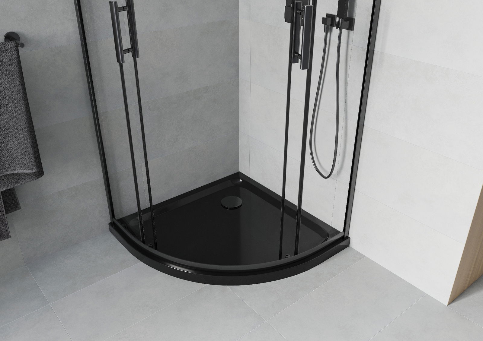 Mexen Rio suihkukaappi puolipyöreä 90 x 90 cm, läpinäkyvä, musta + Flat-suihkuallas, musta - 863-090-090-70-00-4170B