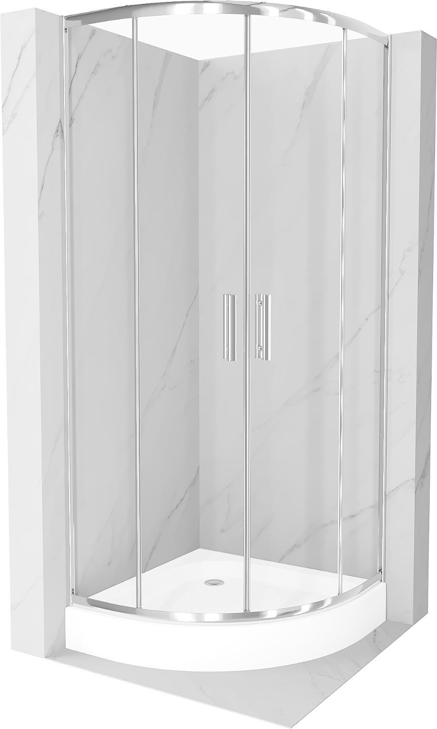 Mexen Rio puolipyöreä suihkukaappi 70 x 70 cm, kirkas, kromi + suihkuallas, valkoinen - 863-070-070-01-00-4710