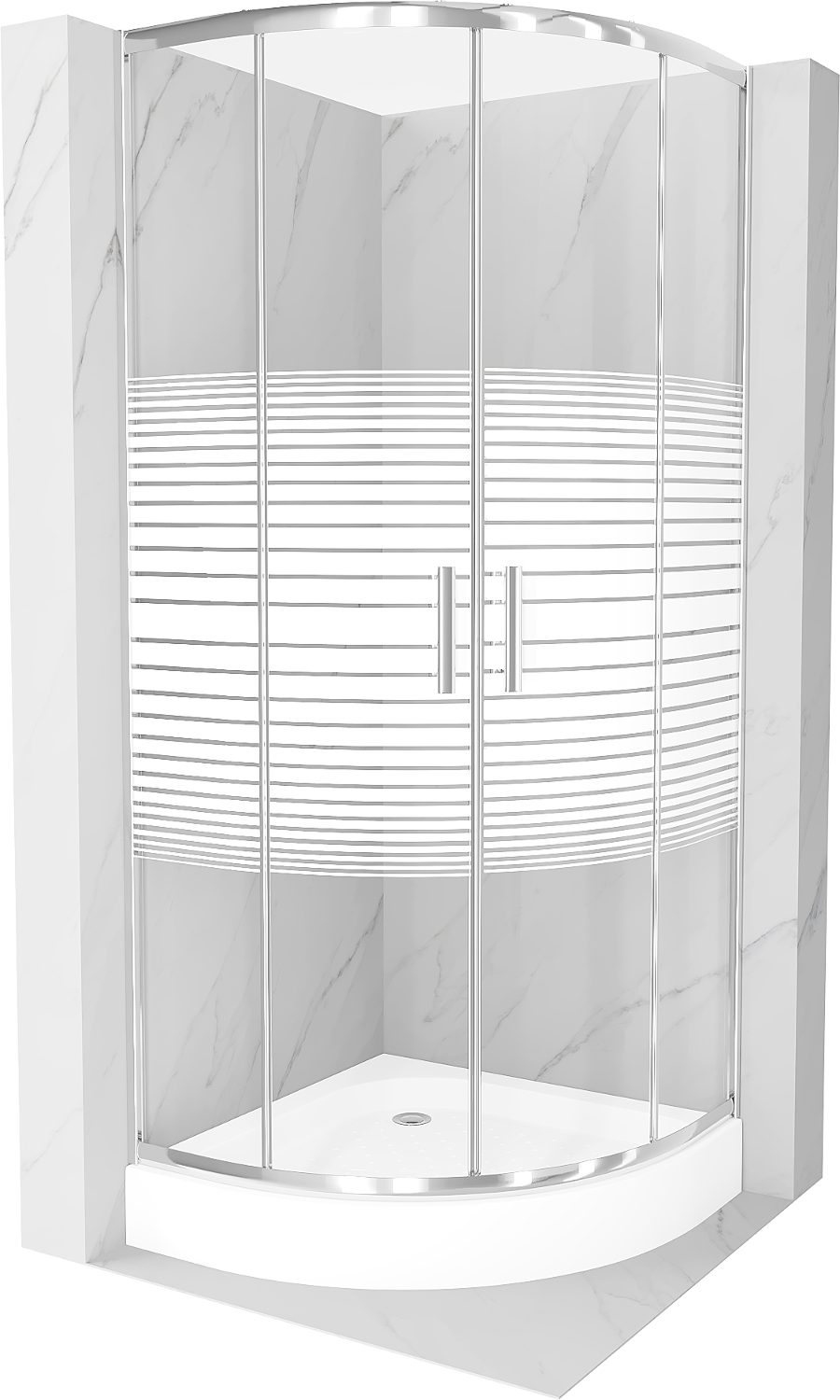 Mexen Rio puolipyöreä suihkukaappi 70 x 70 cm, valkoiset raidat, kromi + suihkuallas, valkoinen - 863-070-070-01-20-4710