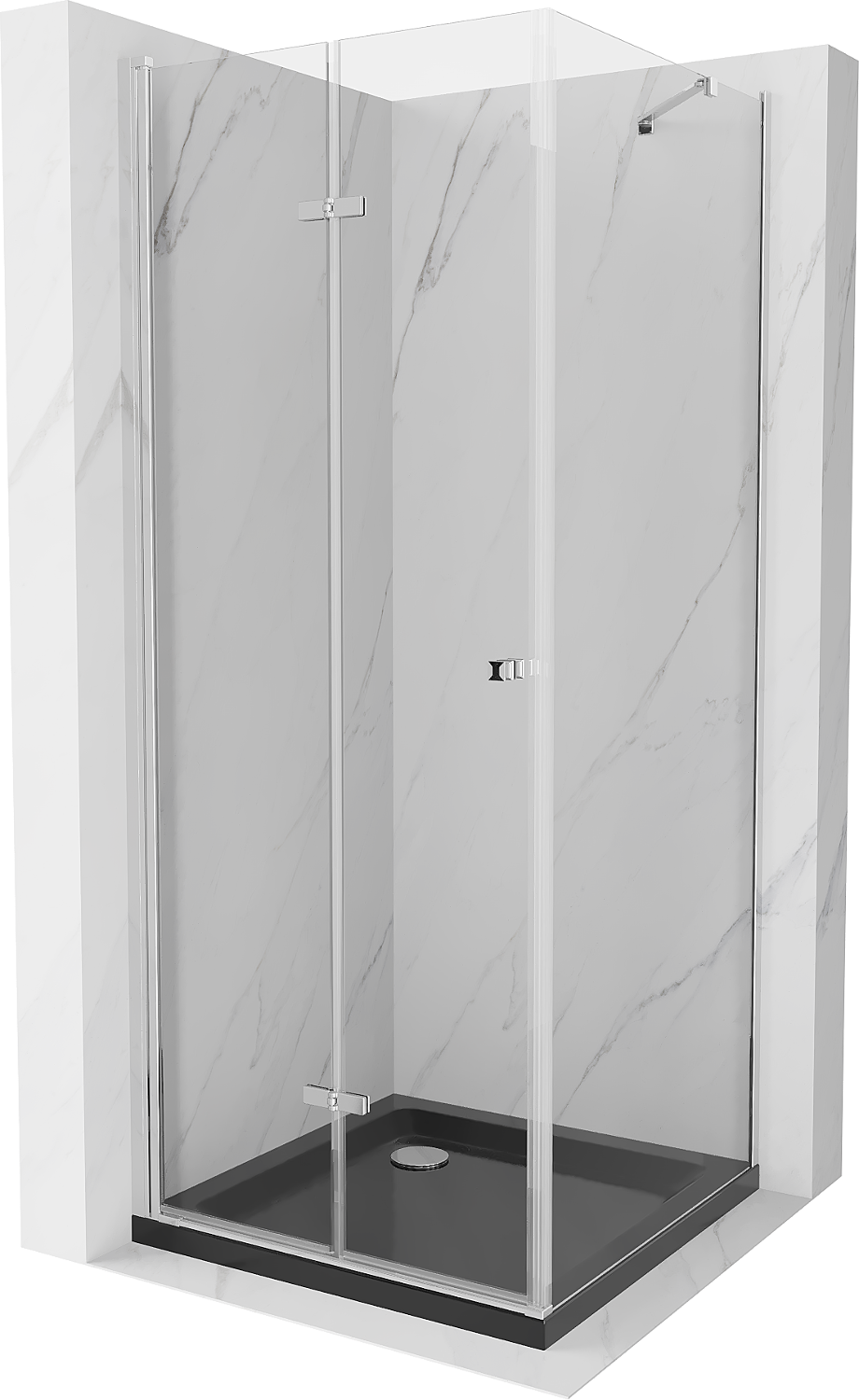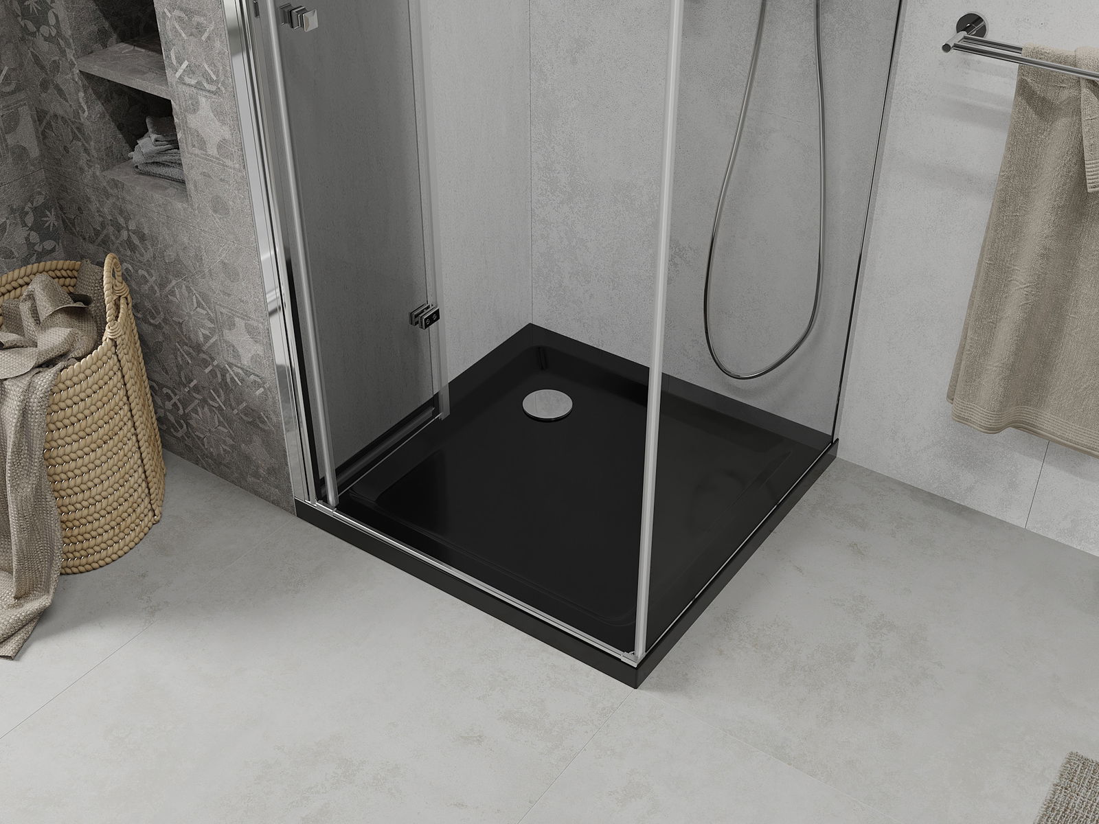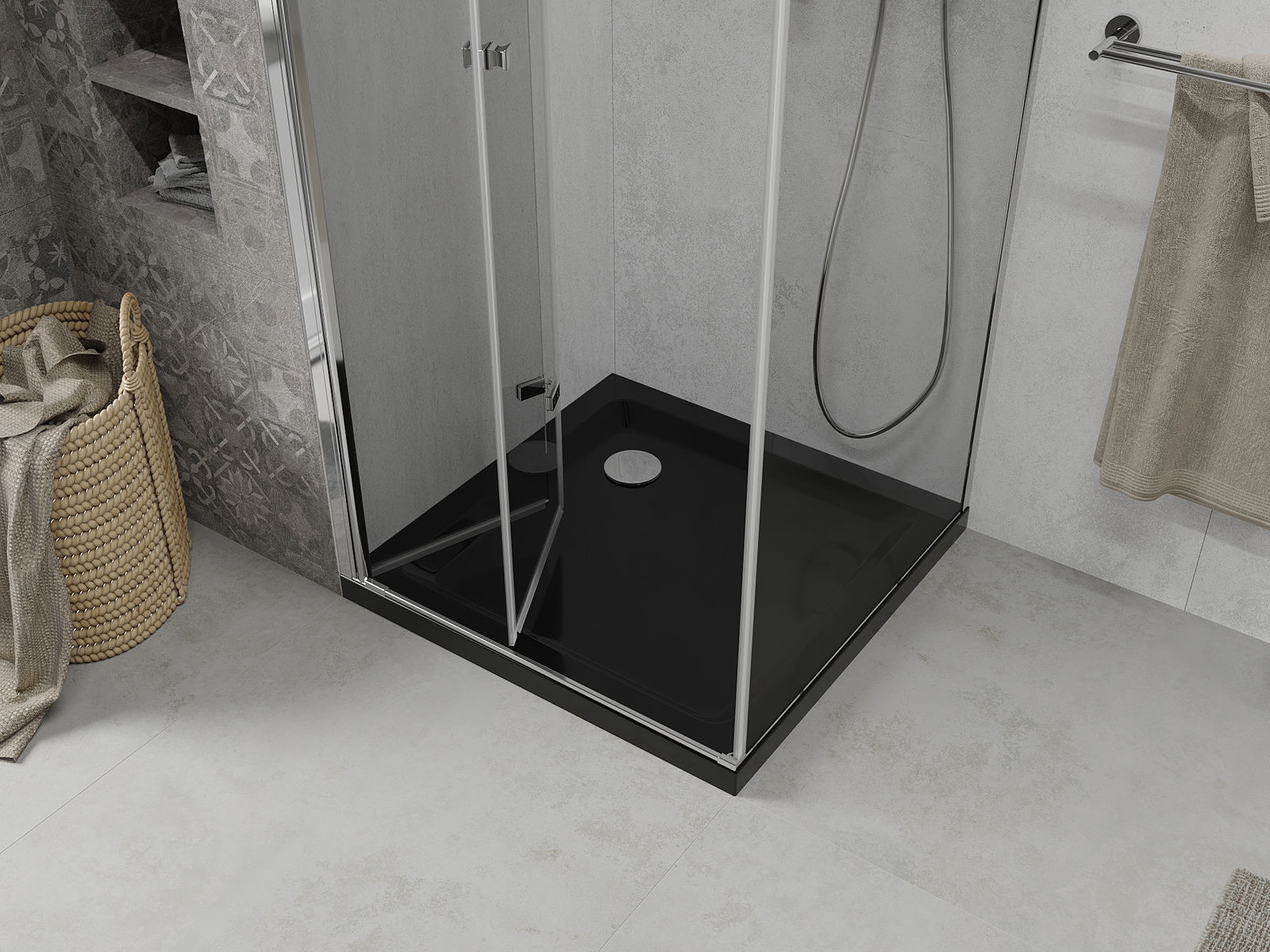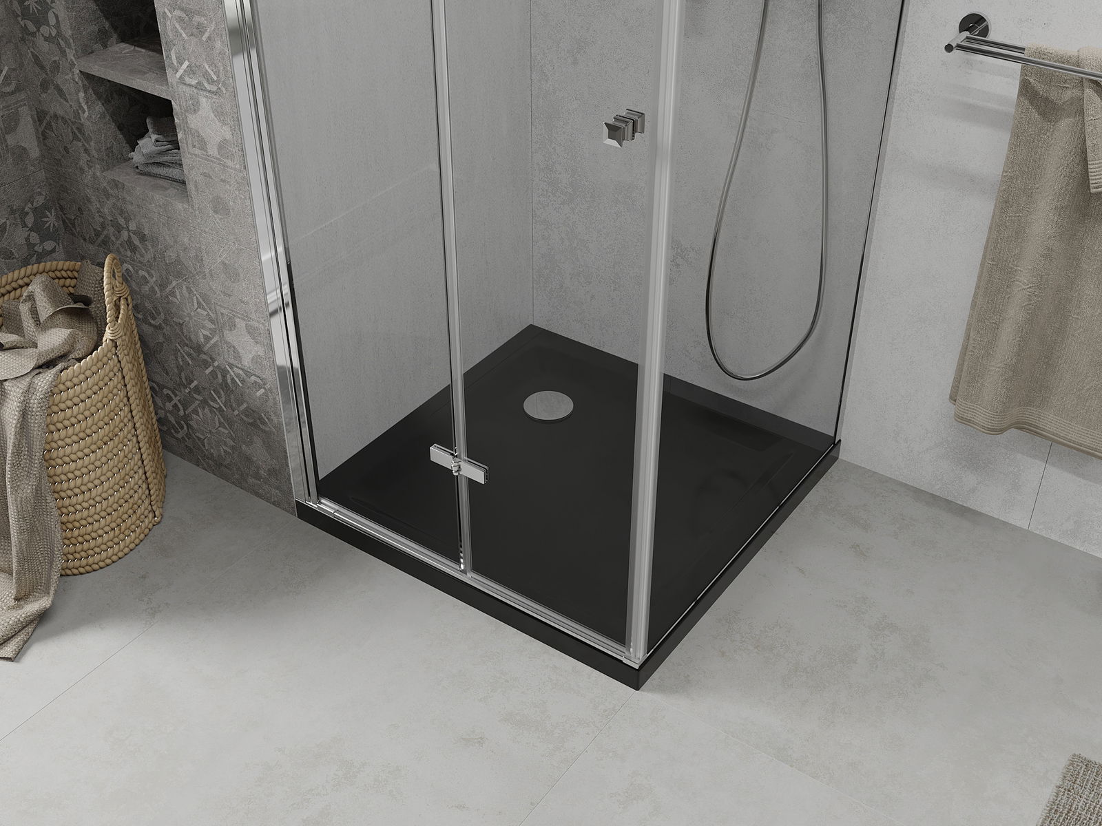 Mexen Lima taittuva suihkukoppi 80 x 80 cm, läpinäkyvä, kromi + Flat-suihkuallas, musta - 856-080-080-01-00-4070