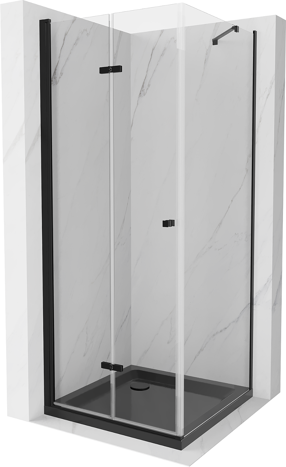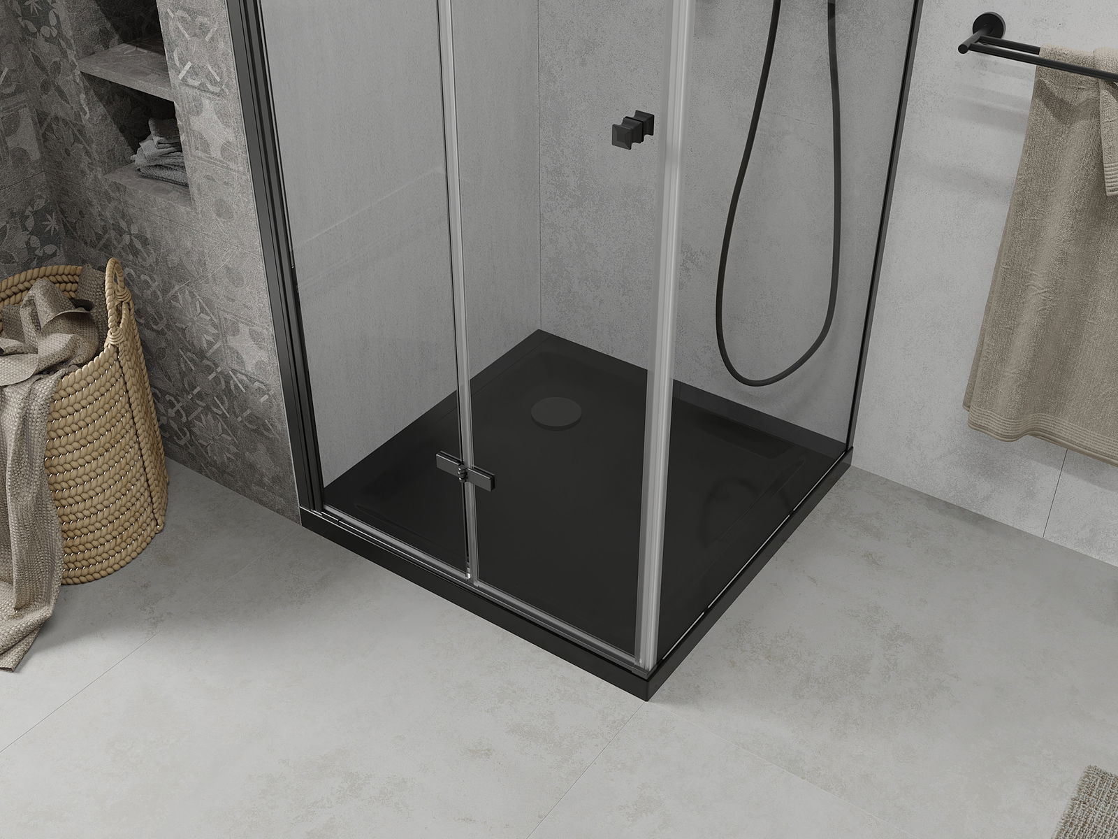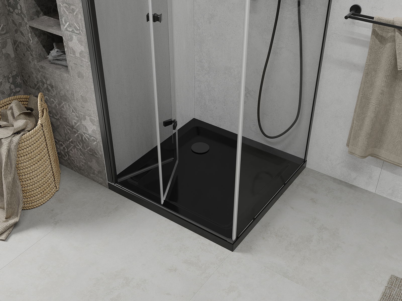 Mexen Lima taitettava suihkukaappi 90 x 90 cm, läpinäkyvä, musta + Flat-suihkualusta, musta - 856-090-090-70-00-4070B