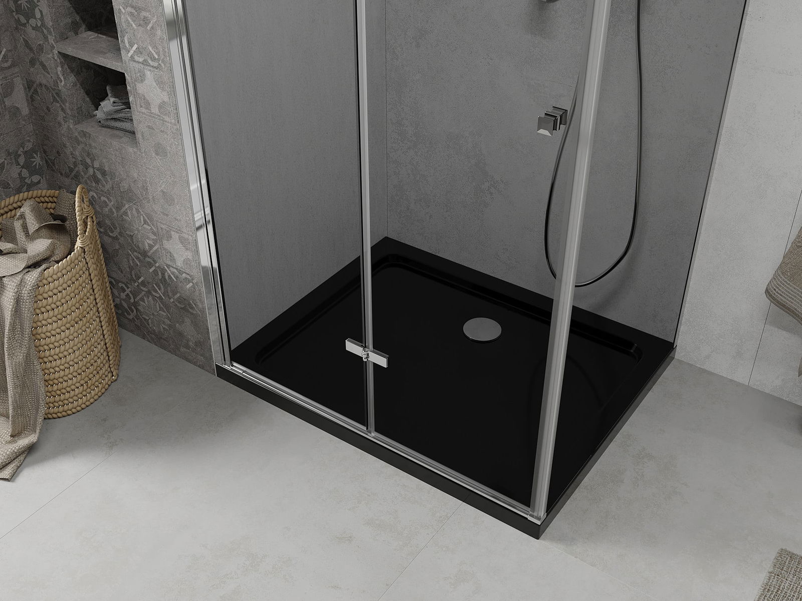 Mexen Lima taitettava suihkukaappi 80 x 100 cm, grafiitti, kromi + Flat-suihkuallas, musta - 856-080-100-01-40-4070