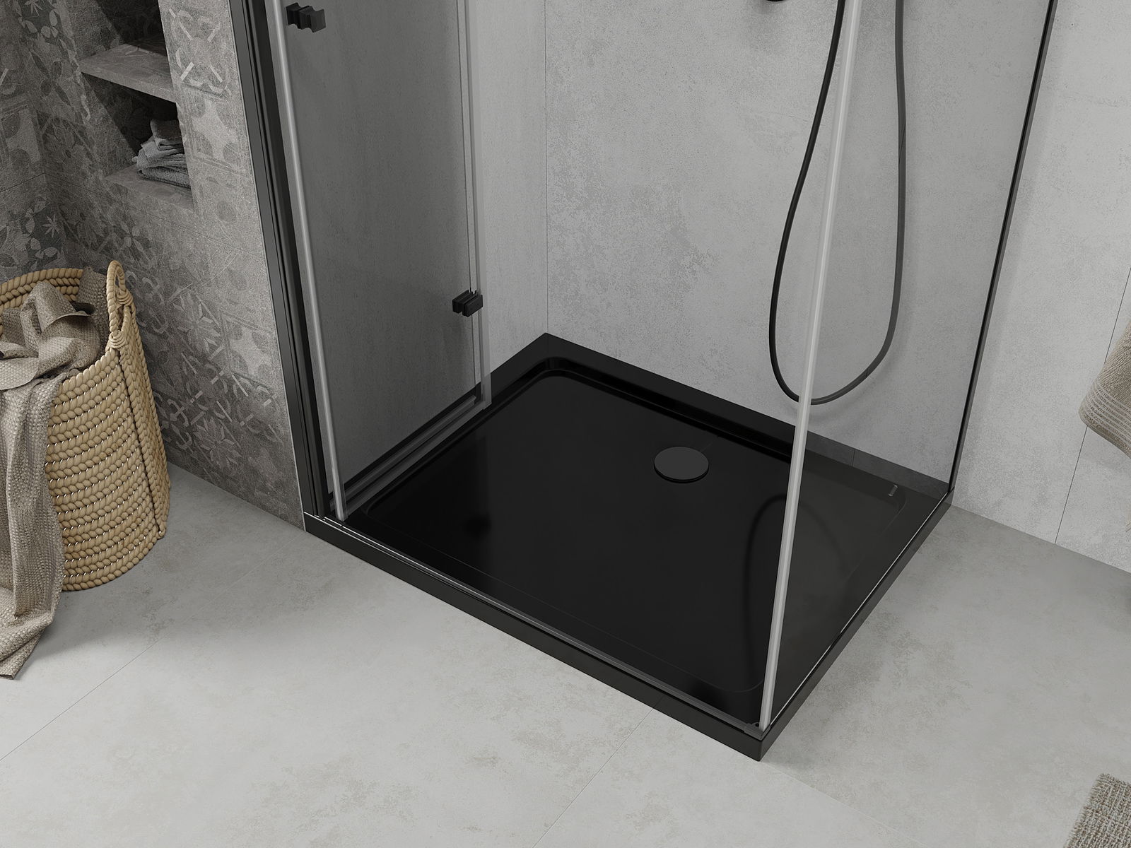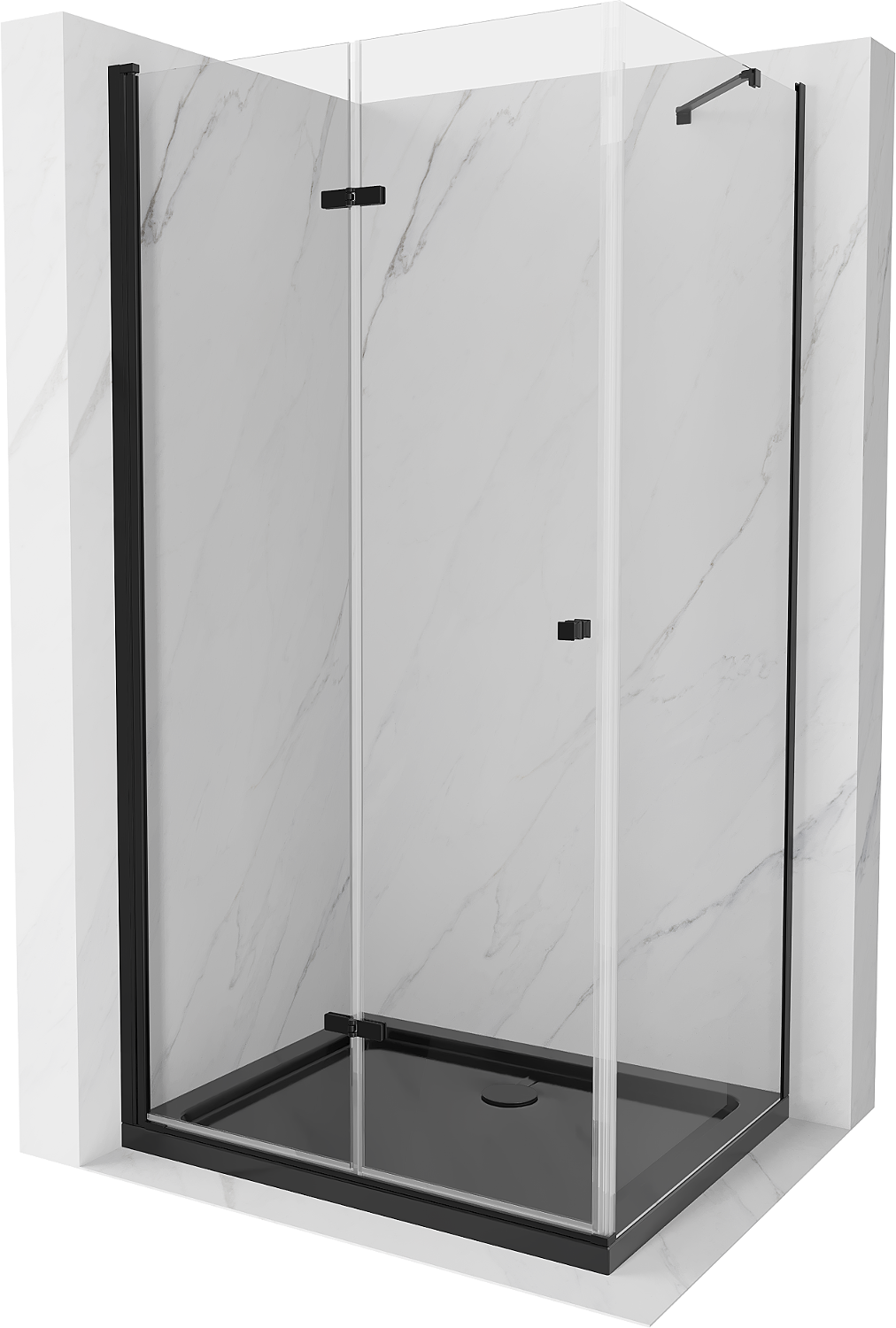 Mexen Lima taittuva suihkukaappi 80 x 120 cm, läpinäkyvä, musta + Flat-suihkuallas, musta - 856-080-120-70-00-4070B