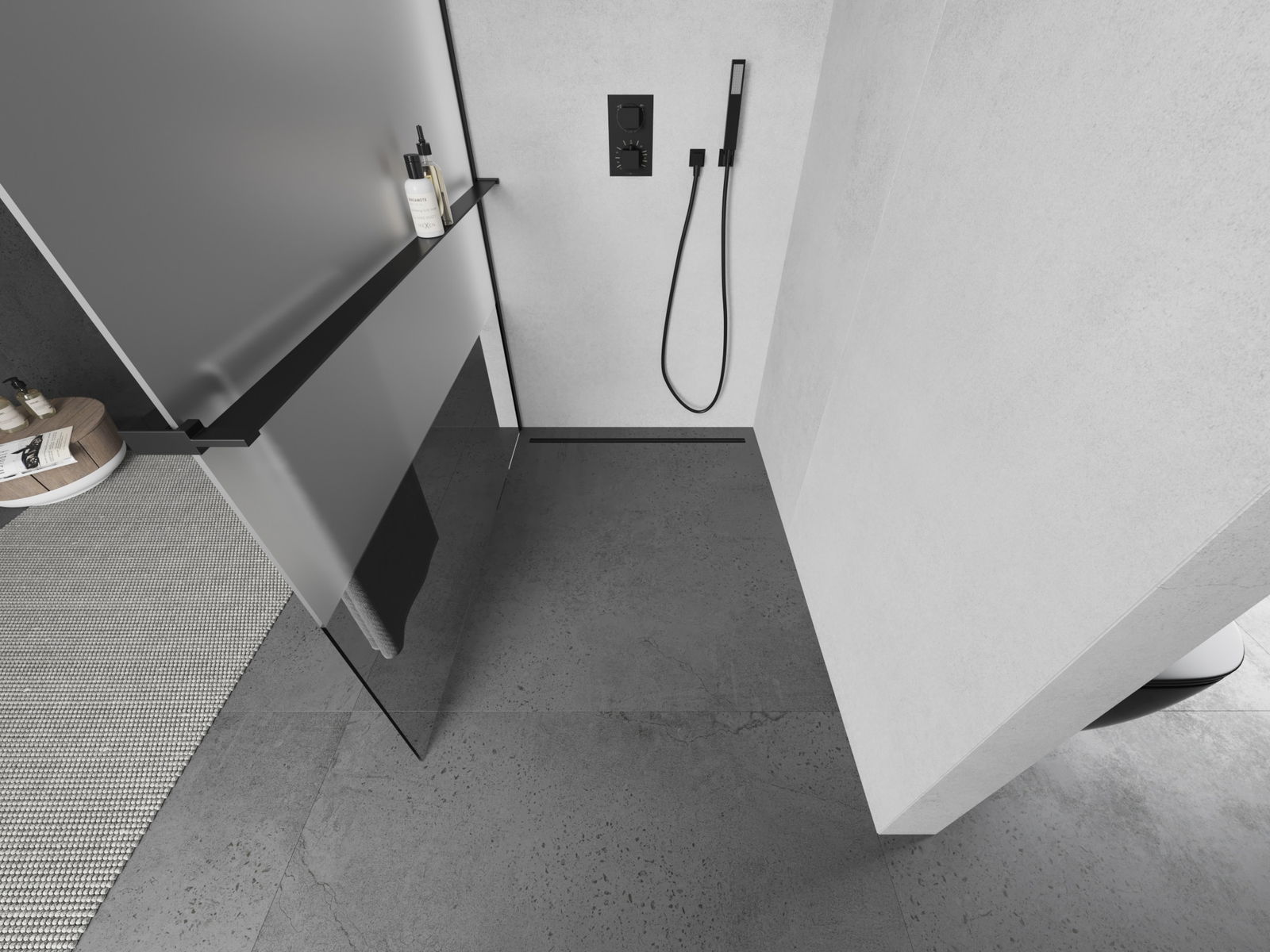 Mexen Kioto+ suihkuseinä hyllyllä Walk-in 90 x 200 cm, läpinäkyvä/huurre, musta - 800-090-121-70-35