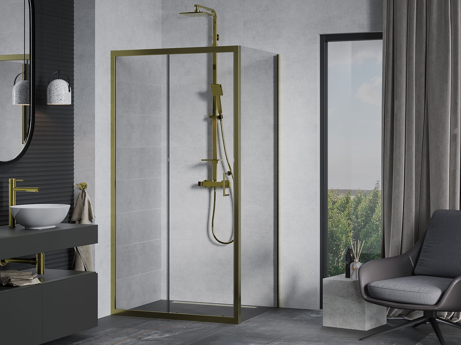 Mexen Apia liukuovellinen suihkukaappi 125 x 70 cm, kirkas, kultainen - 840-125-070-50-00