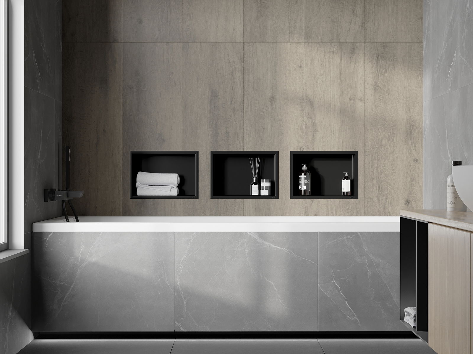 Mahdollisuus asentaa seinään tai erityisesti valmistettuun rakenteeseen. Tämä on erittäin moderni ja toiminnallinen ratkaisu, joka mahdollistaa tilan säästämisen sekä tuotteen sovittamisen sisustuksen estetiikkaan luoden yhtenäisen kokonaisuuden.