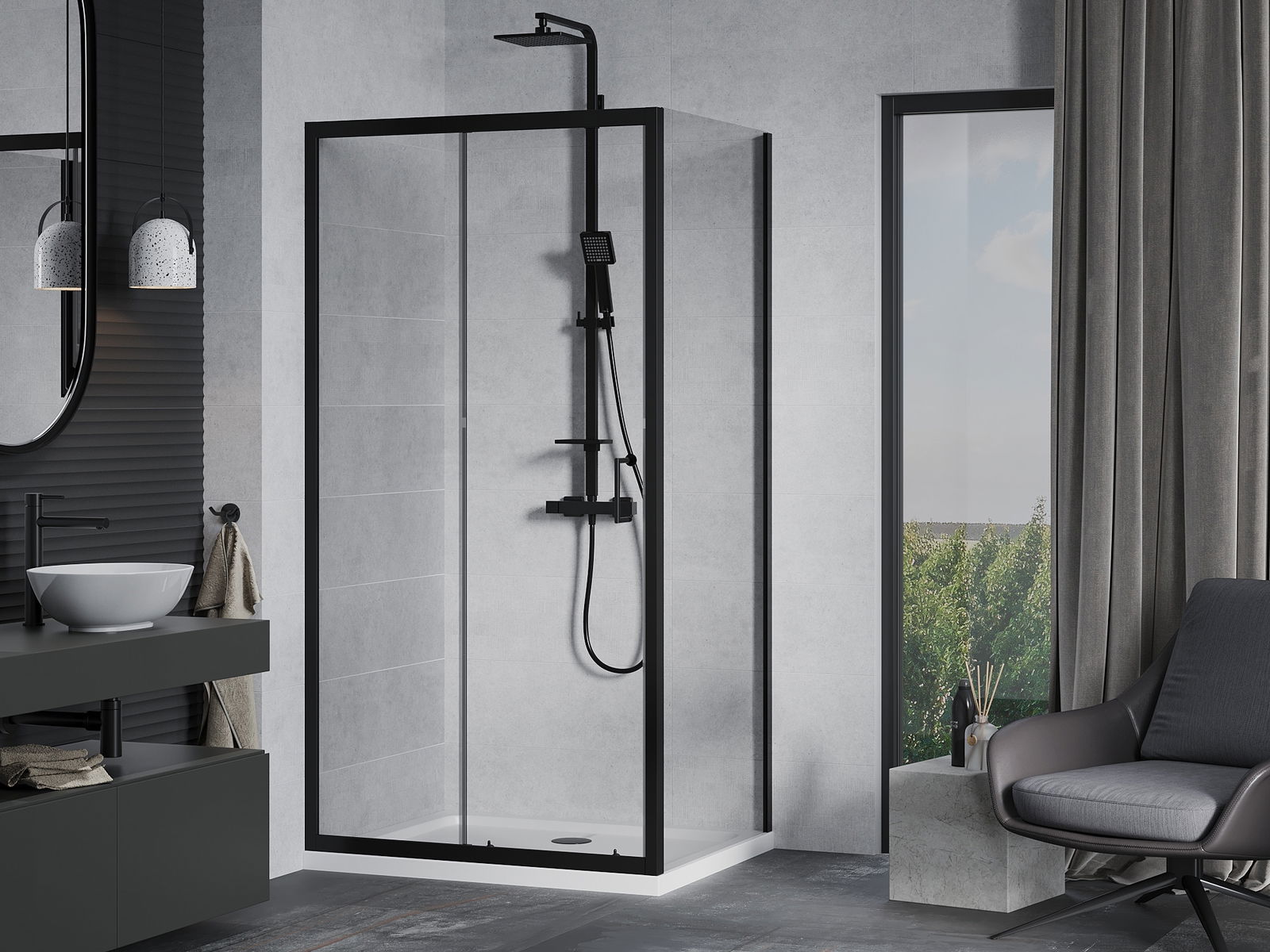 Mexen Rio neliönmuotoinen suihkukaappi 90 x 90 cm, läpinäkyvä, musta - 860-090-090-70-00