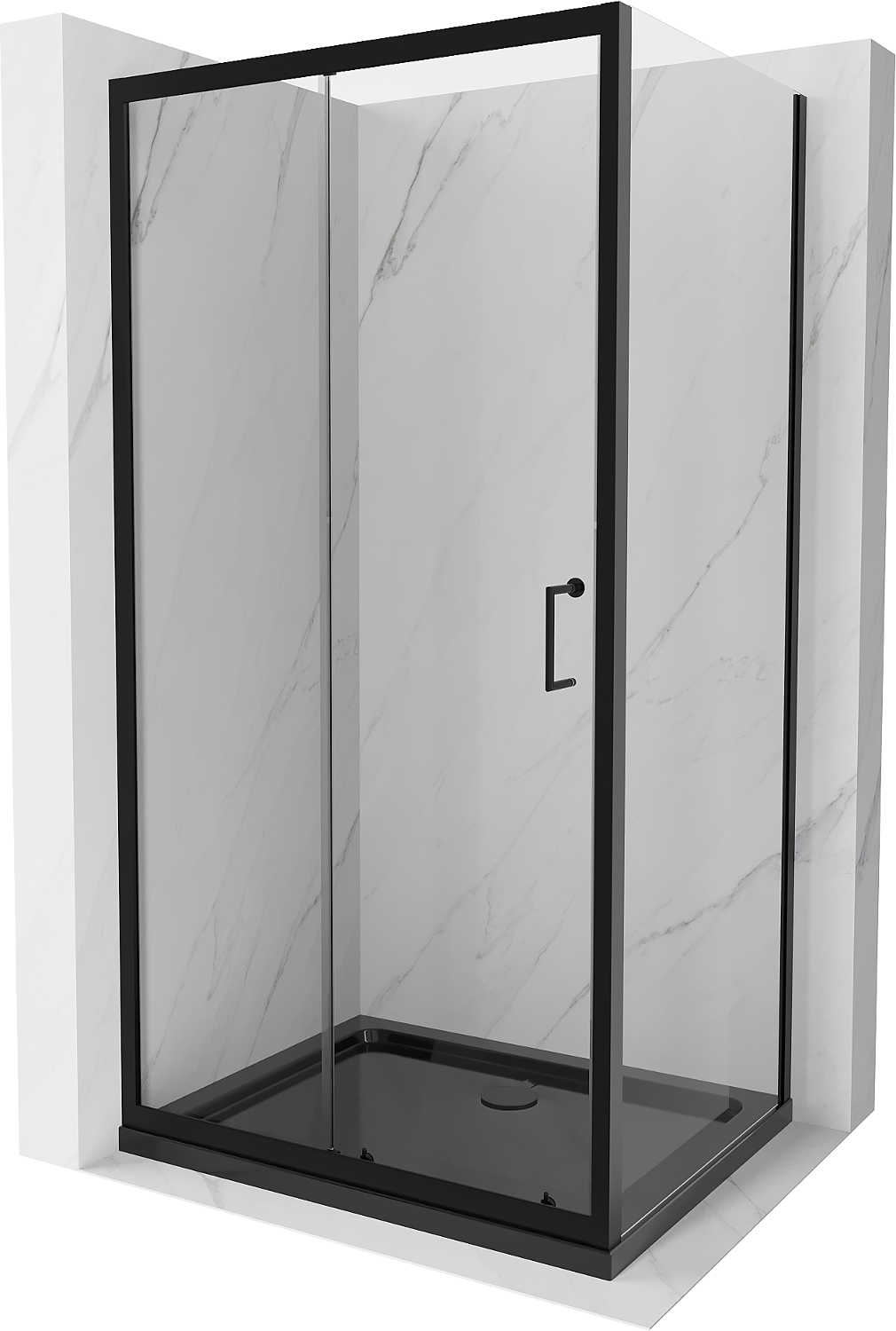 Mexen Apia liukuva suihkukaappi 110 x 90 cm, läpinäkyvä, musta + Flat-suihkualusta, musta - 840-110-090-70-00-4070B