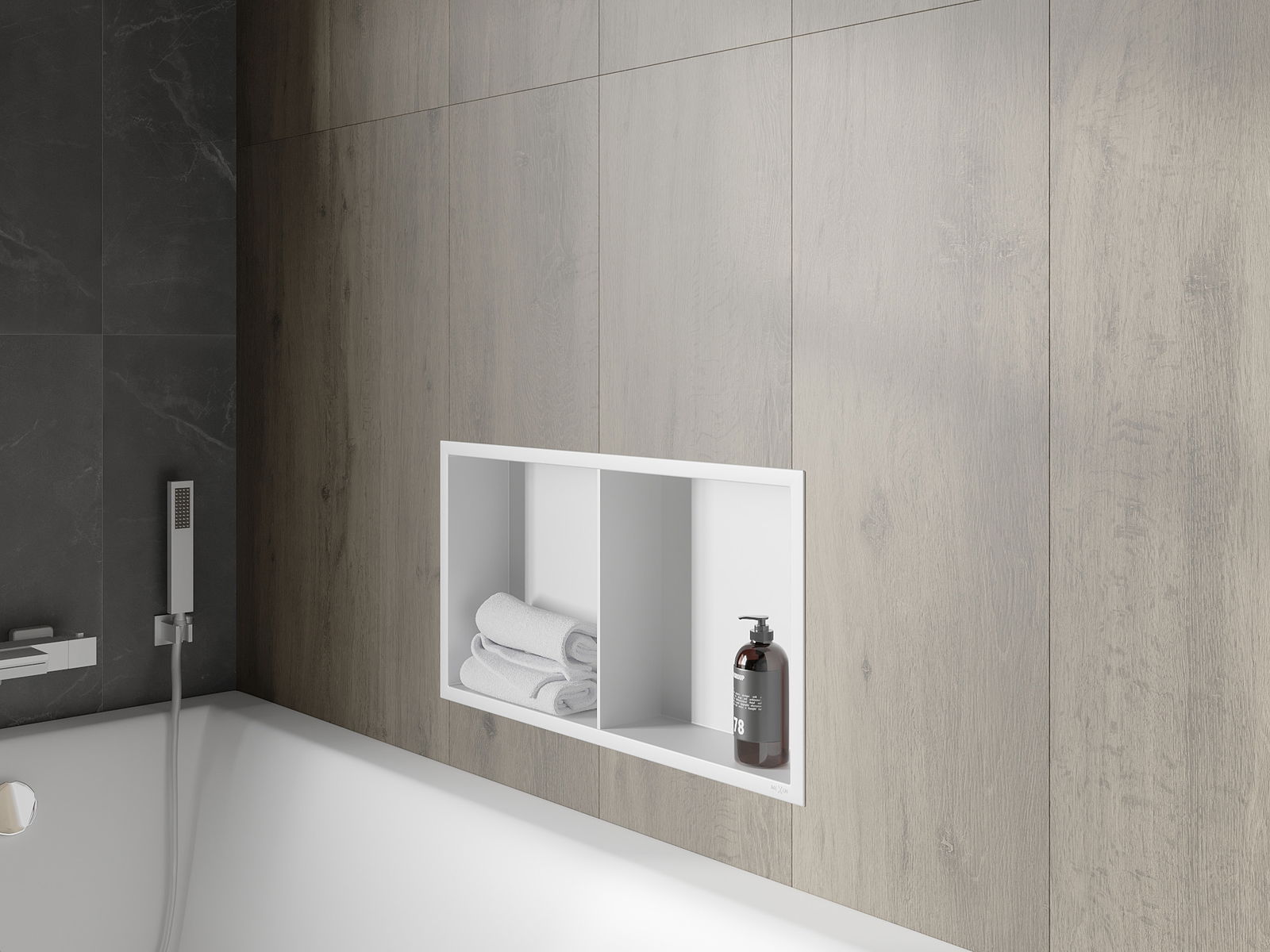 Mahdollisuus asentaa seinään tai erityisesti valmistettuun rakenteeseen. Tämä on erittäin moderni ja toiminnallinen ratkaisu, joka mahdollistaa tilan säästämisen sekä tuotteen sovittamisen sisustuksen estetiikkaan luoden yhtenäisen kokonaisuuden.