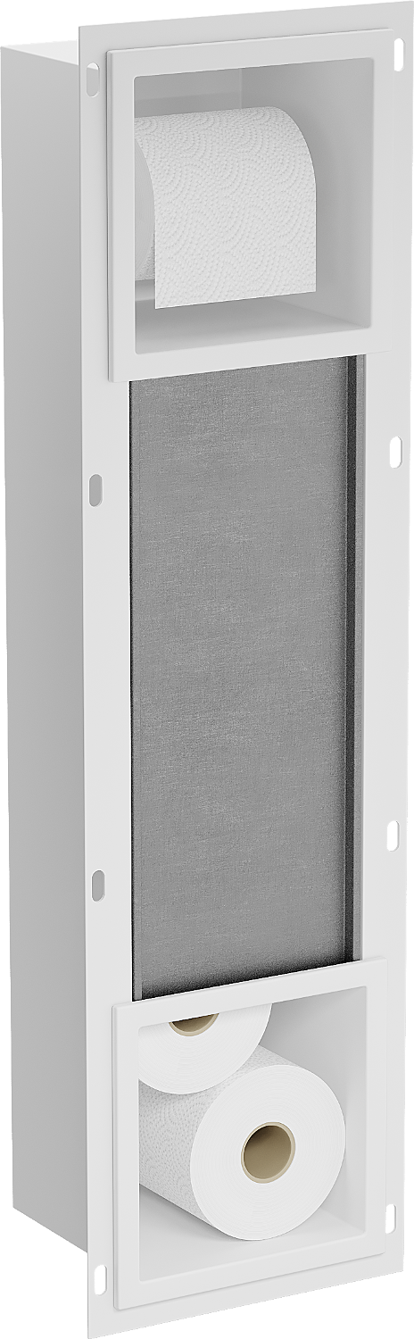 X-wall on käytännöllinen wc-paperin pidike, jossa on sisäänrakennettu seinään integroitu lehtiteline. Uusi rulla on aina käden ulottuvilla, ja aikaisemmin wc-paperin säilytykseen tarkoitettua tilaa voidaan käyttää muulla tavoin.