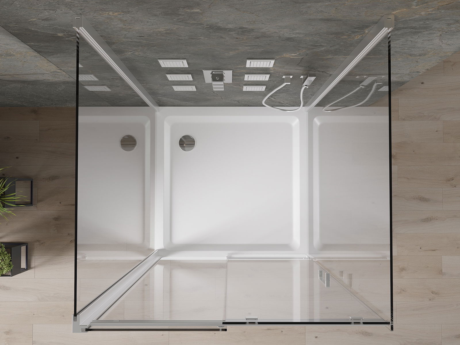 Mexen Omega-3S 3-seinäinen suihkukoppi, liukuovi 100x100 cm, läpinäkyvä, kromi + tasainen suihkualusta