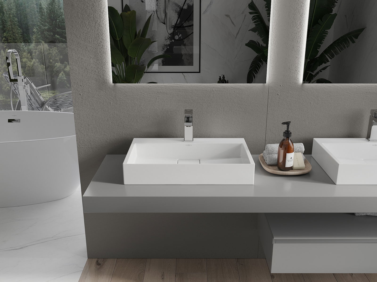 Mexen Ava tasolle asennettava komposiittiallas 1/O 60 x 38 cm, valkoinen - 23016001