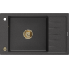Mexen Elias graniittinen 1-altainen keittiöallas valutustasolla 795 x 480 mm, musta/hopea metallihohto, kultainen vesilukko