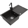Mexen Leo graniittinen yhden kulhon keittiöallas kuivaustasolla ja Rita-keittiöhana, musta/hopean metallinhohto