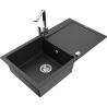 Mexen Leo Graniittinen 1-allas tiskiallas valutustasolla ja keittiöhanalla Rita, musta/kullanvärinen metallinhohto