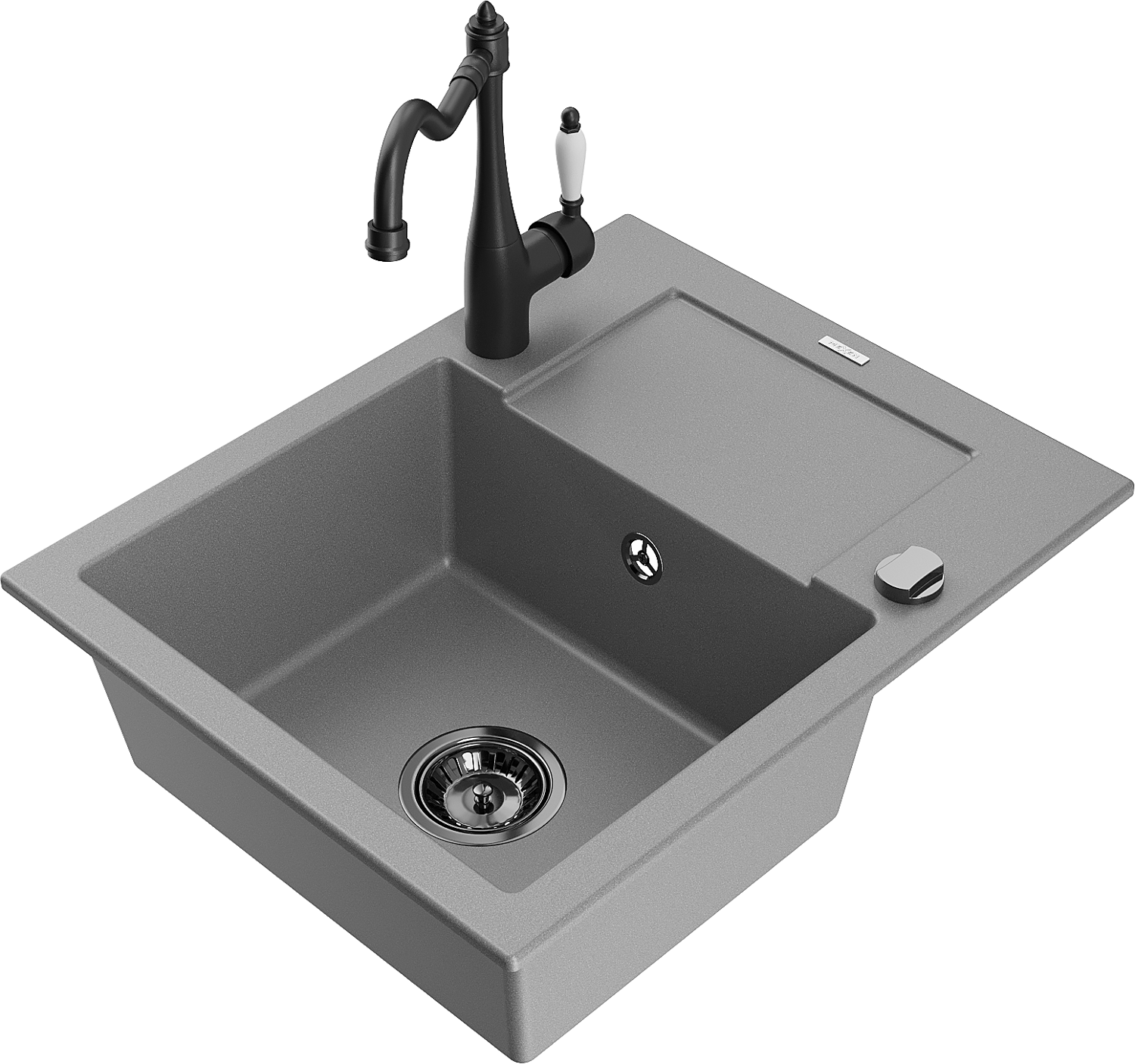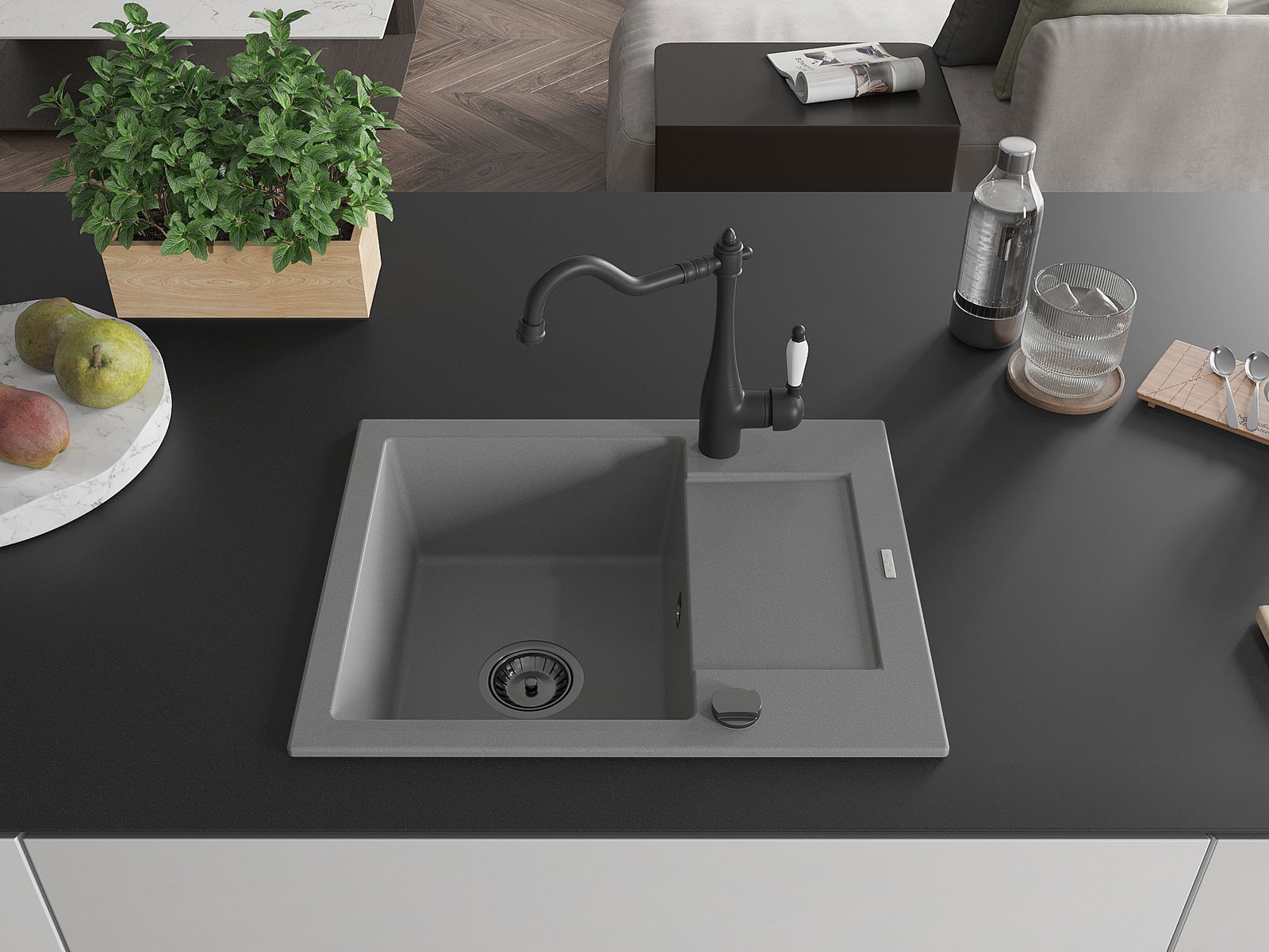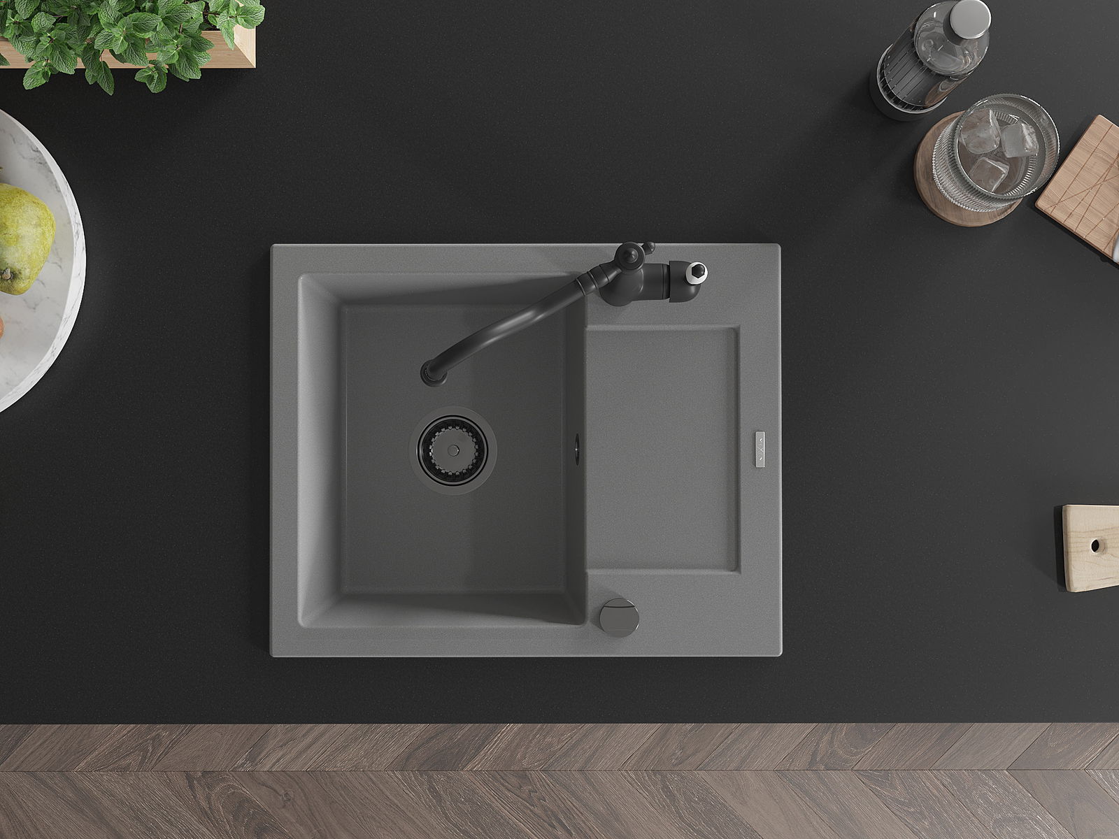Mexen Enzo graniittinen 1-altainen tiskiallas valutustasolla ja keittiöhanalla Carla, harmaa - 6506-71-670700-70-B