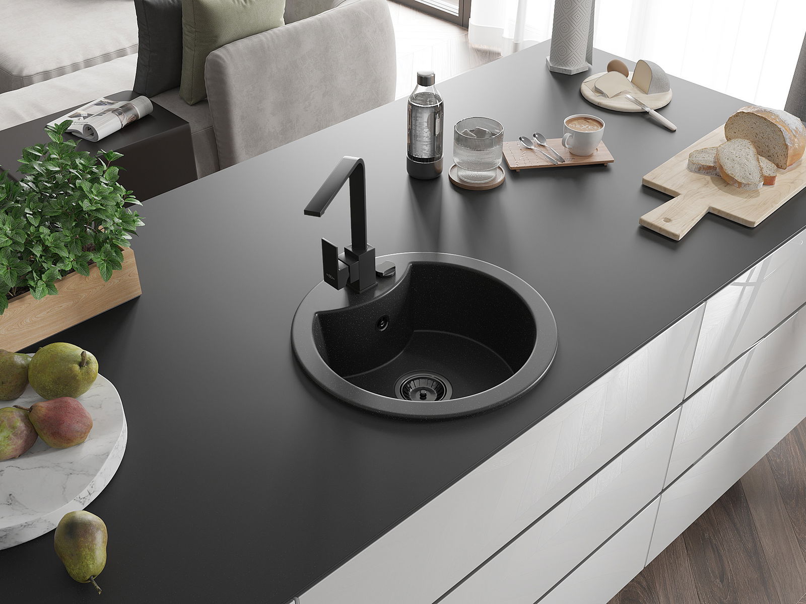 Pesuallas on valmistettu korkealaatuisesta graniitista. Se on tyylikäs ja ennen kaikkea käytännöllinen lisä jokaiseen keittiöön, sen tyylistä riippumatta. Graniitin korkea laatu ja kestävyys takaavat monivuotisen käytön.