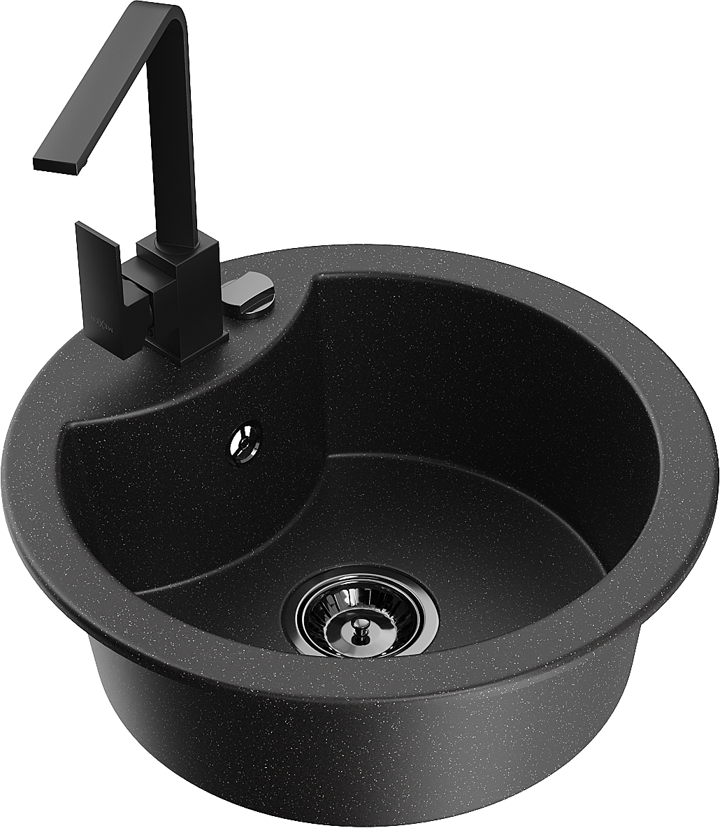 Mexen Diego graniittinen 1-uunainen keittiöallas ja Rita keittiöhana, musta / hopea metallihohto - 6512-73-670300-70-B