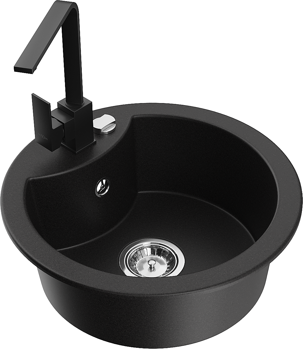Mexen Diego graniittinen 1-altainen tiskiallas keittiöhanalla Rita, musta - 6512-77-670300-70