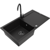 Mexen Leo graniittinen keittiöallas 1-allas keittotasolla ja keittiöhanalla Telma, musta/hopeametalli - 6501-73-670200-70-B