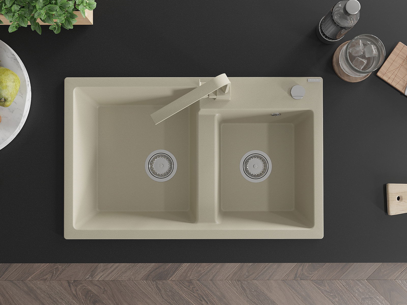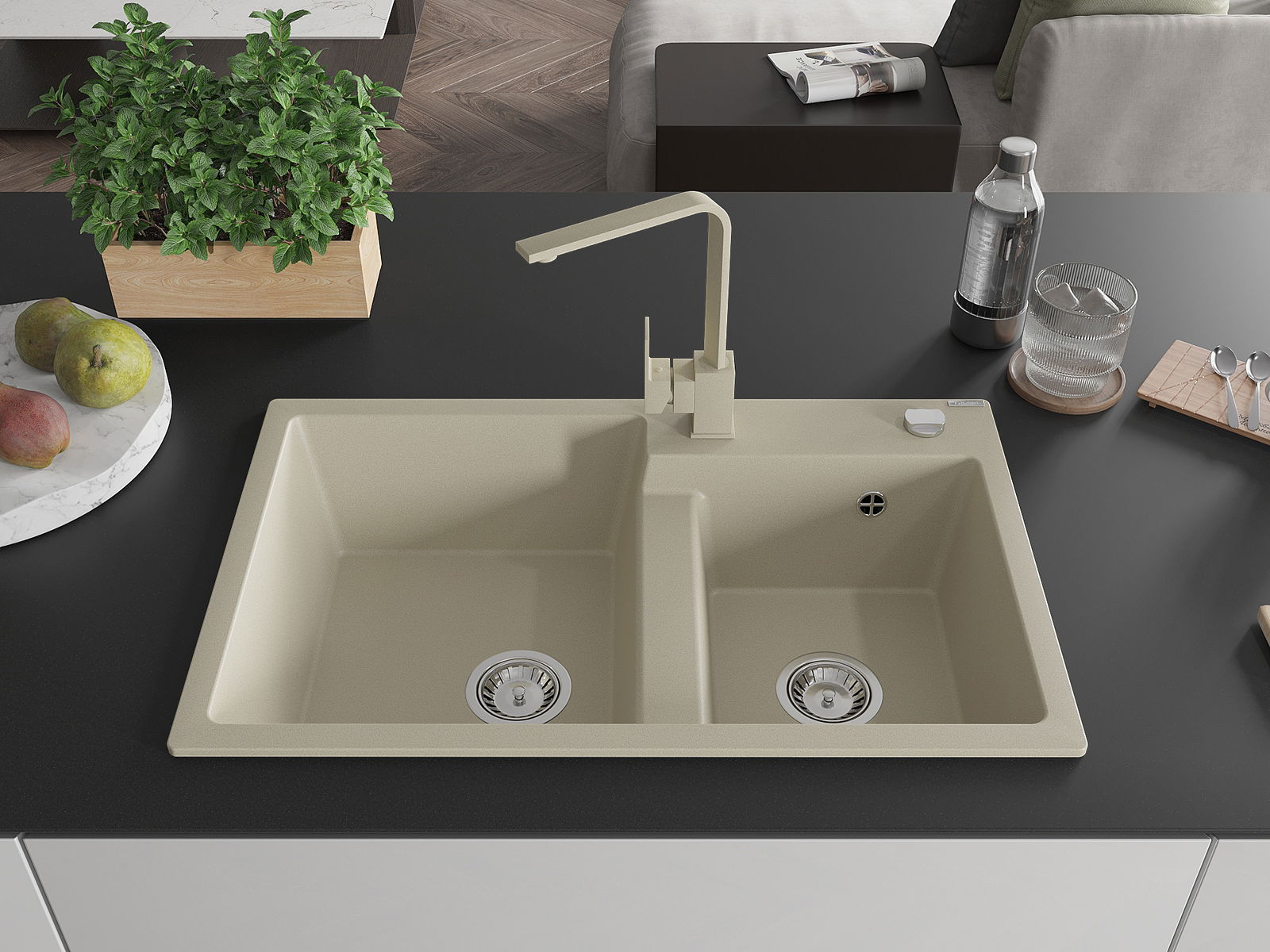 Mexen Tomas graniittinen 2-osainen keittiöallas ja keittiöhana Rita, beige - 6516-69-670300-69