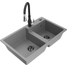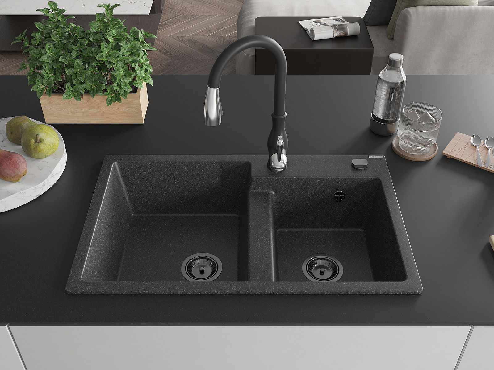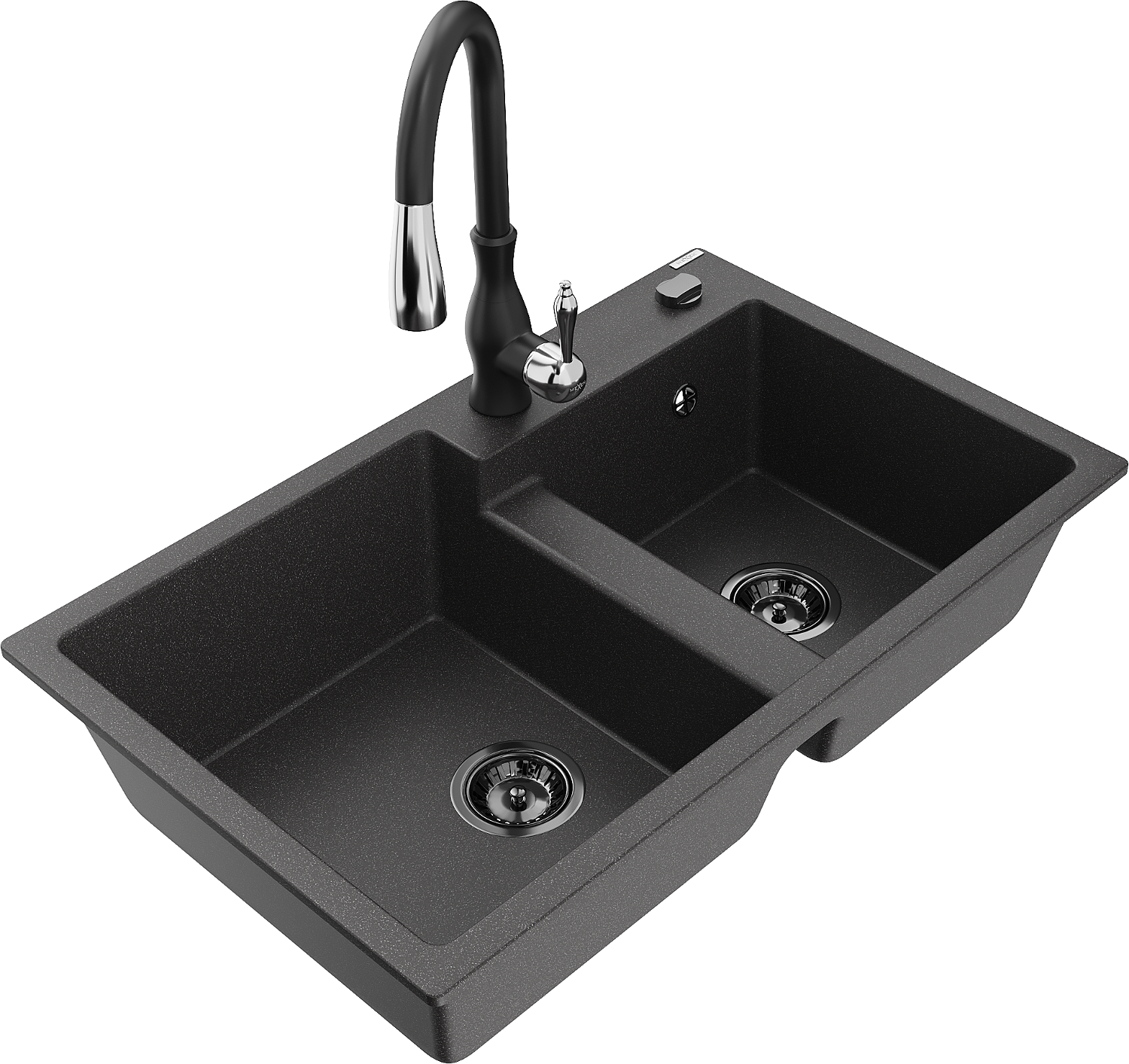 Mexen Tomas graniittinen 2-osainen keittiöallas Savita-keittiöhanalla, musta pilkullinen - 6516-76-672601-70-B