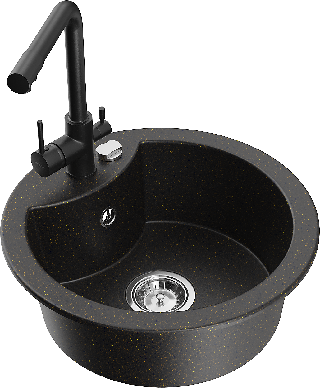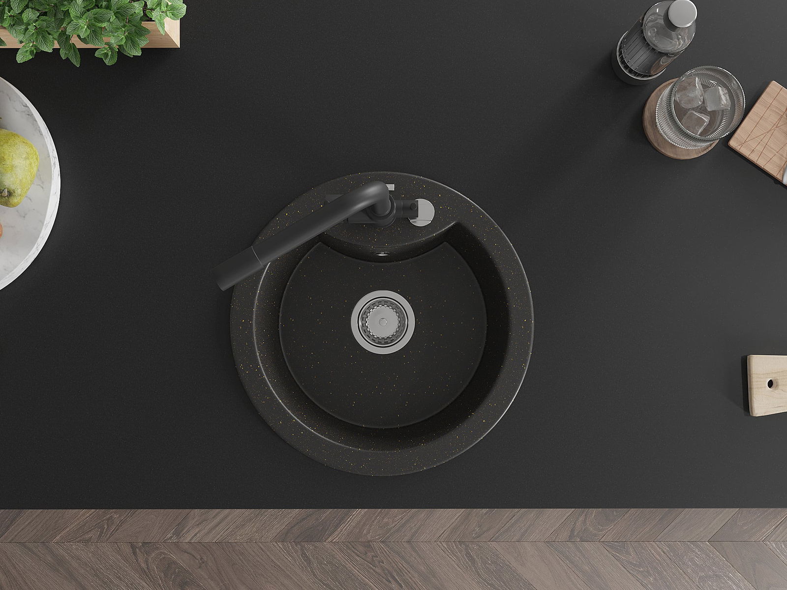 Mexen Diego yksi-kammioinen graniittiallas ja keittiöhana Duero, musta/kultainen metallihohto - 6512-75-671600-70