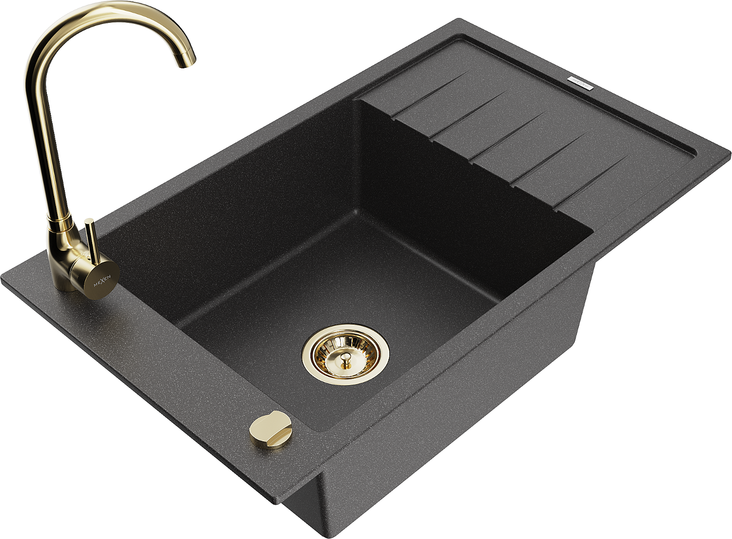 Mexen Elias 1-osainen graniittiallas valutustasolla ja Telma-keittiöhanalla, musta pilkullinen - 6511-76-670200-50
