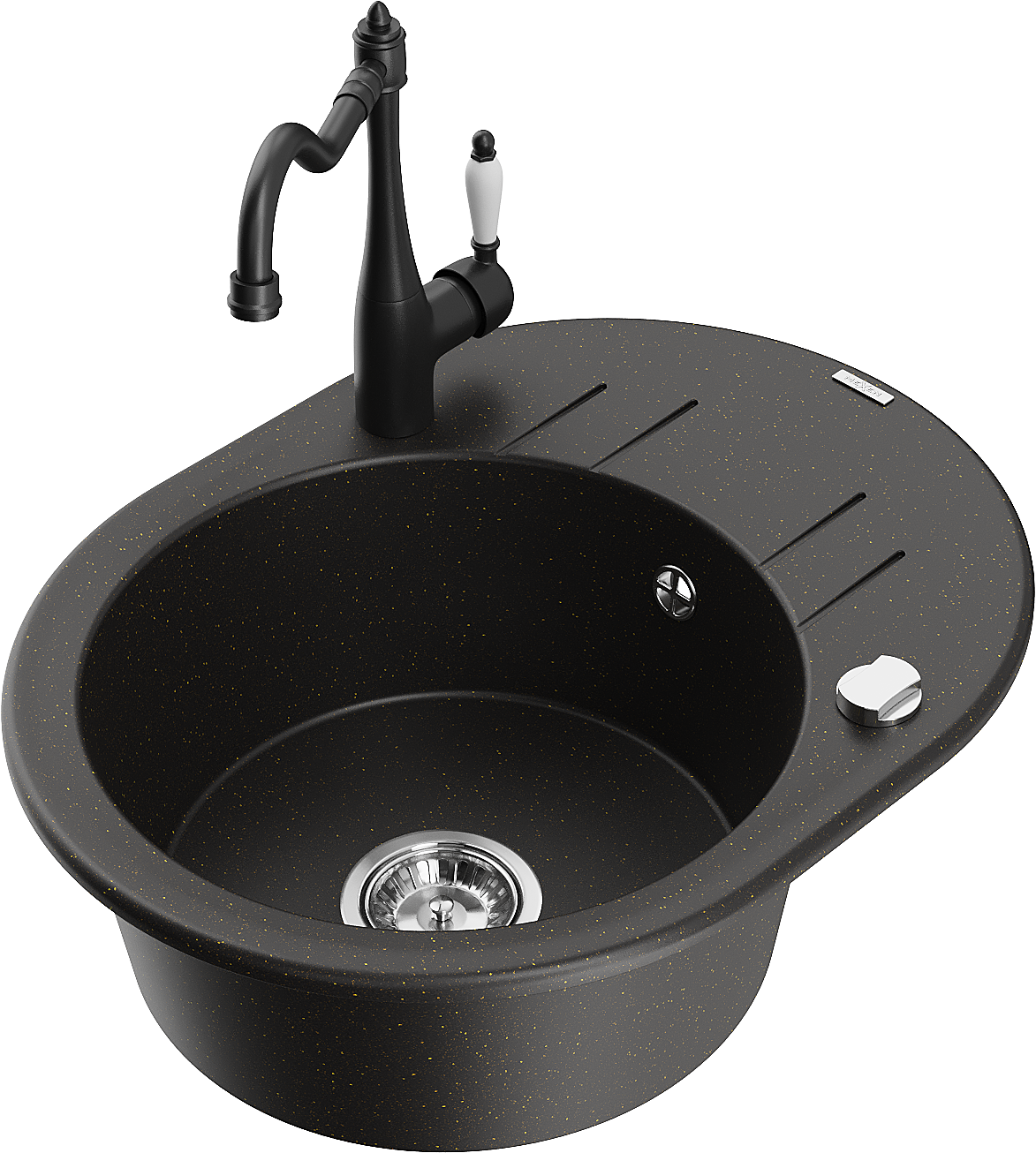 Mexen Kevin graniittinen 1-osainen tiskiallas valutustasolla ja keittiöhana Carla, musta/kultainen metallinhohto