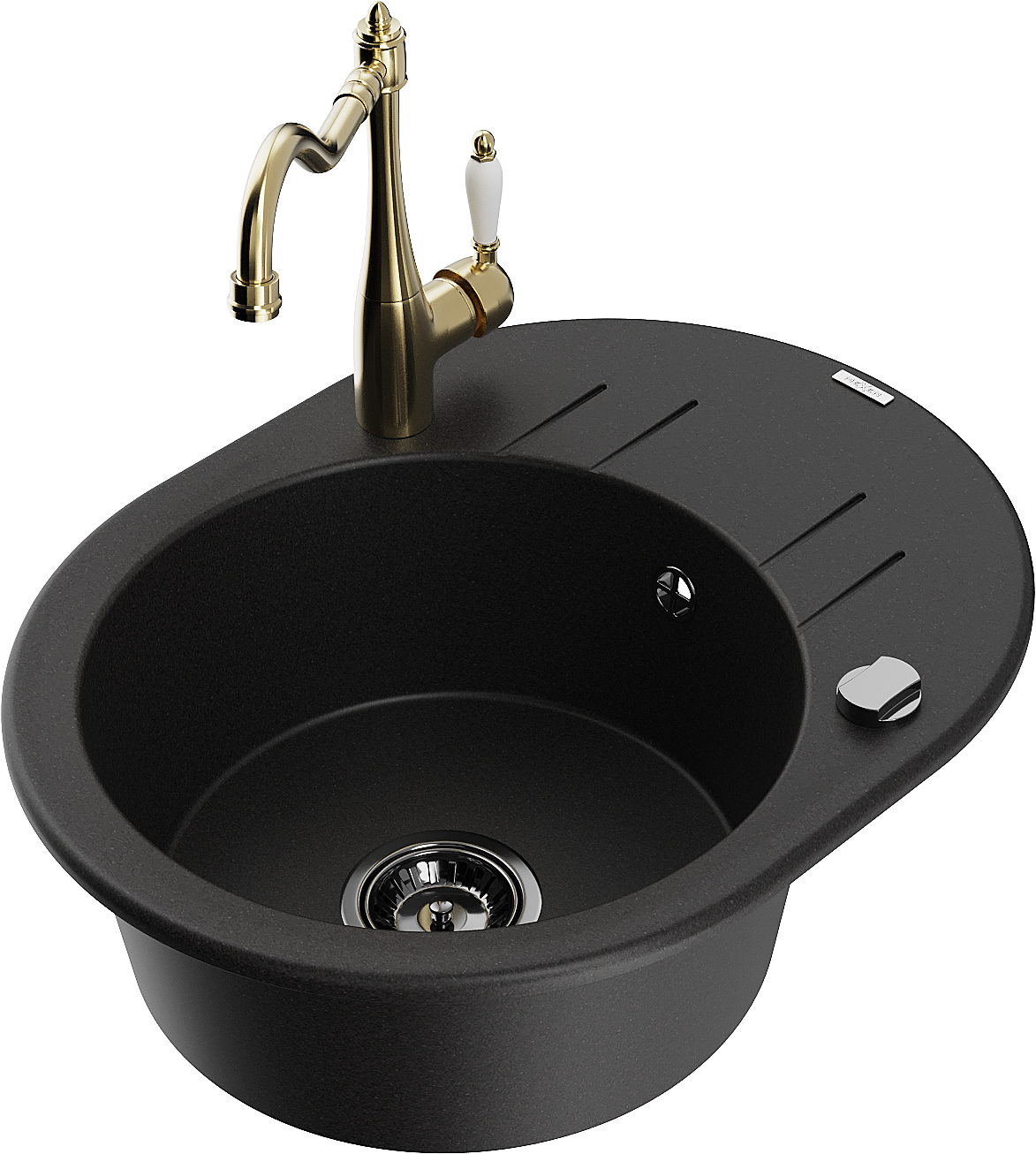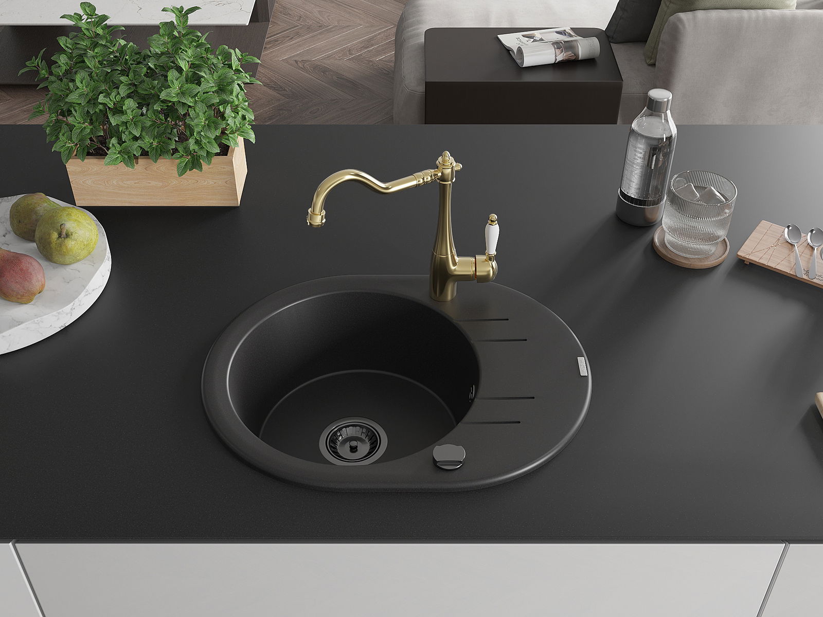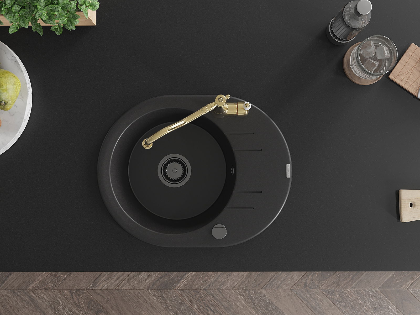 Mexen Kevin graniittinen yhden kulhon pesuallas valutustasolla ja keittiöhana Carla, musta - 6517-77-670700-50-B