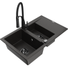 Mexen Gaspar 1,5-tilainen graniittiallas valutustasolla ja keittiöhana Aster, musta/hopea - 6507-73-73450-70-B