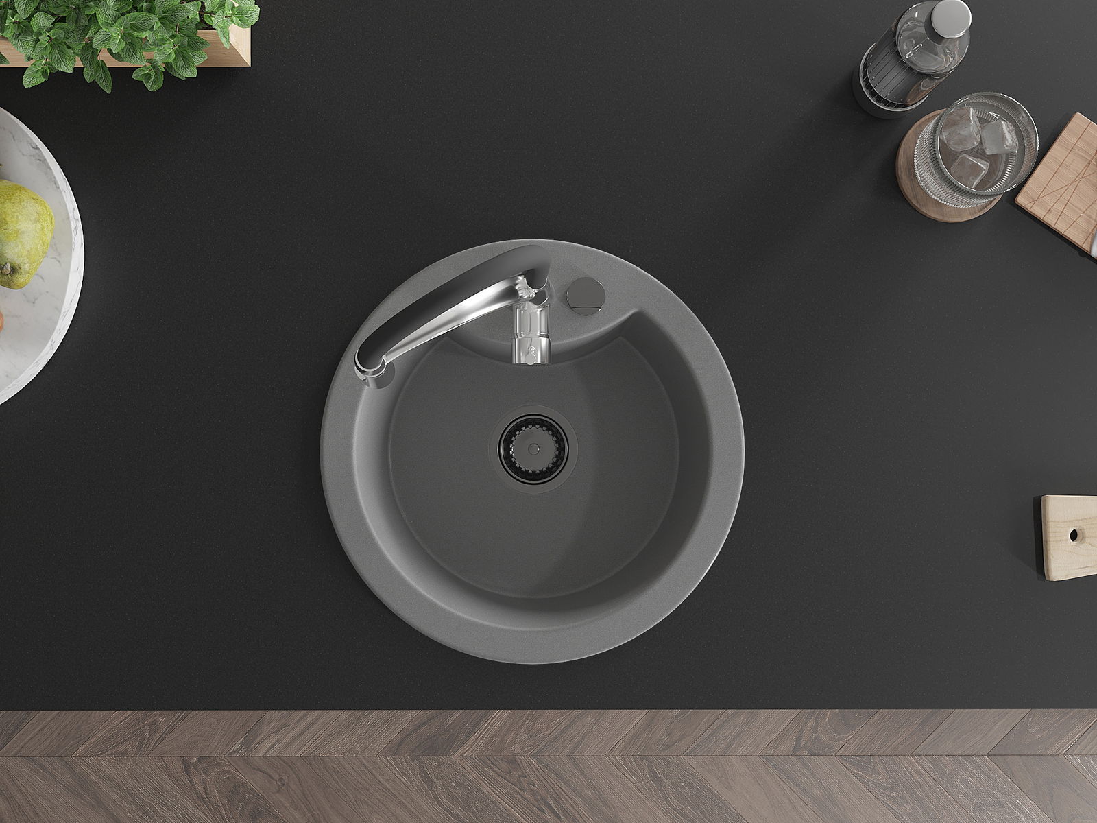 Mexen Diego 1-osainen graniittiallas ja keittiöhana Aster, harmaa - 6512-71-73450-07-B