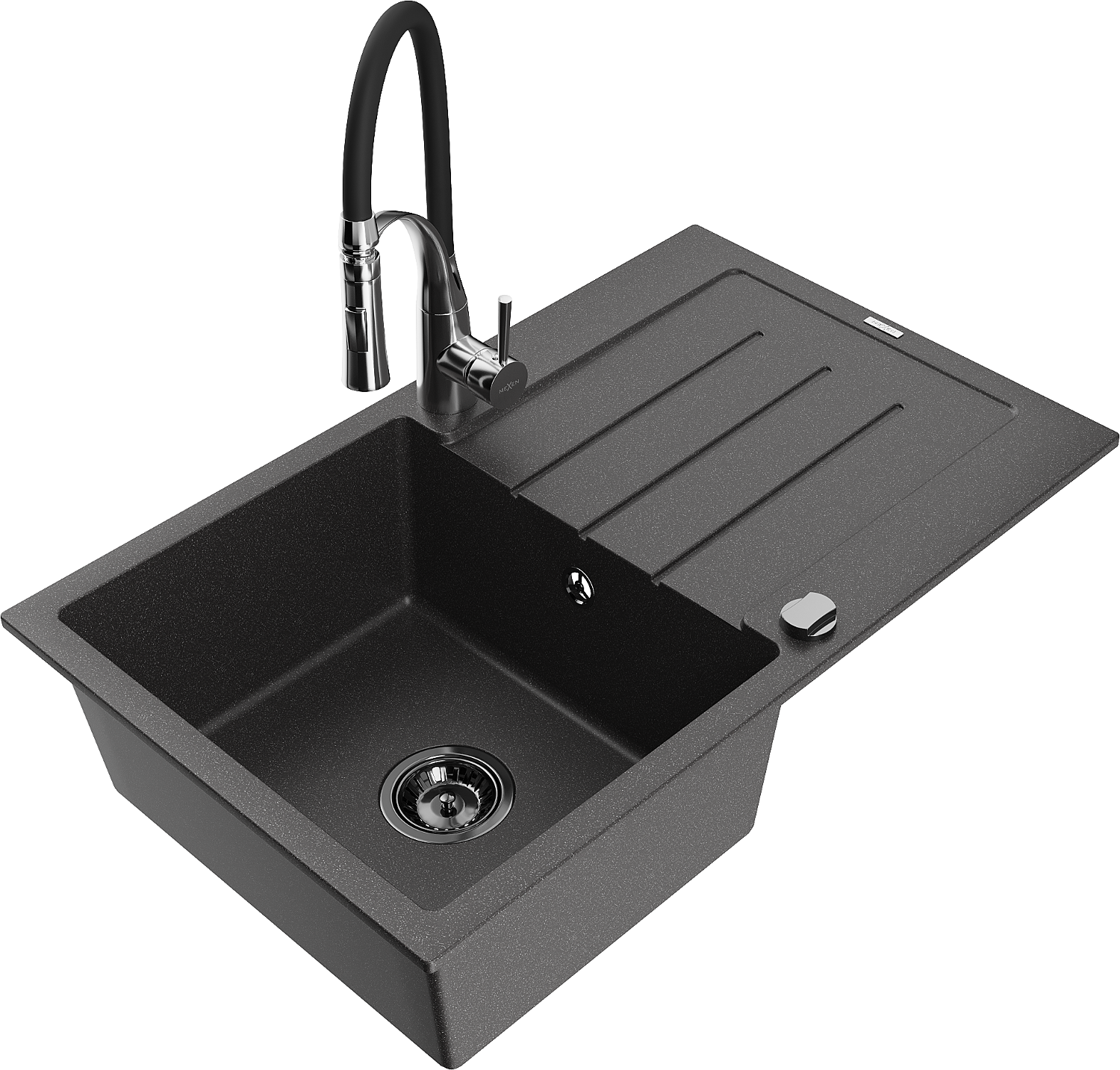 Mexen Bruno Graniittinen 1-altainen tiskiallas valutustasolla ja keittiöhanalla Aster, musta täpläinen - 6513-76-73450-07-B
