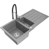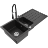 Mexen Andres 1,5-osainen graniittinen keittiöallas, valkoinen, valutustasolla ja keittiöhanalla Aster - 6515-20-73450-02