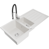 Mexen Andres graniittinen 1,5-altainen keittiöallas valutustasolla ja keittiöhanalla Aster, musta pilkullinen