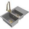 Mexen Gaspar 1,5-osainen graniittinen tiskiallas kuivaustasolla ja Elia-keittiöhanalla, musta/hopean metallinhohtoinen
