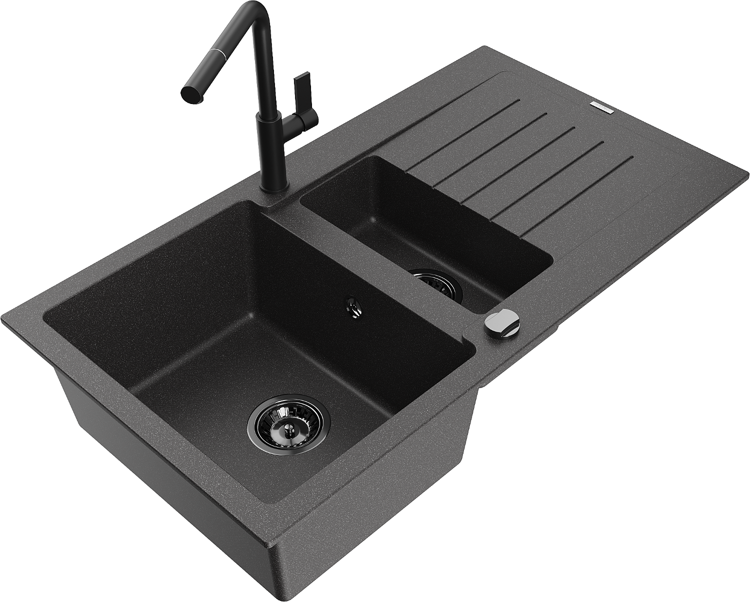 Mexen Matias 1,5-osainen graniittiallas valutustasolla ja Flora-keittiöhanalla, musta pilkullinen - 6502-76-670401-70-B