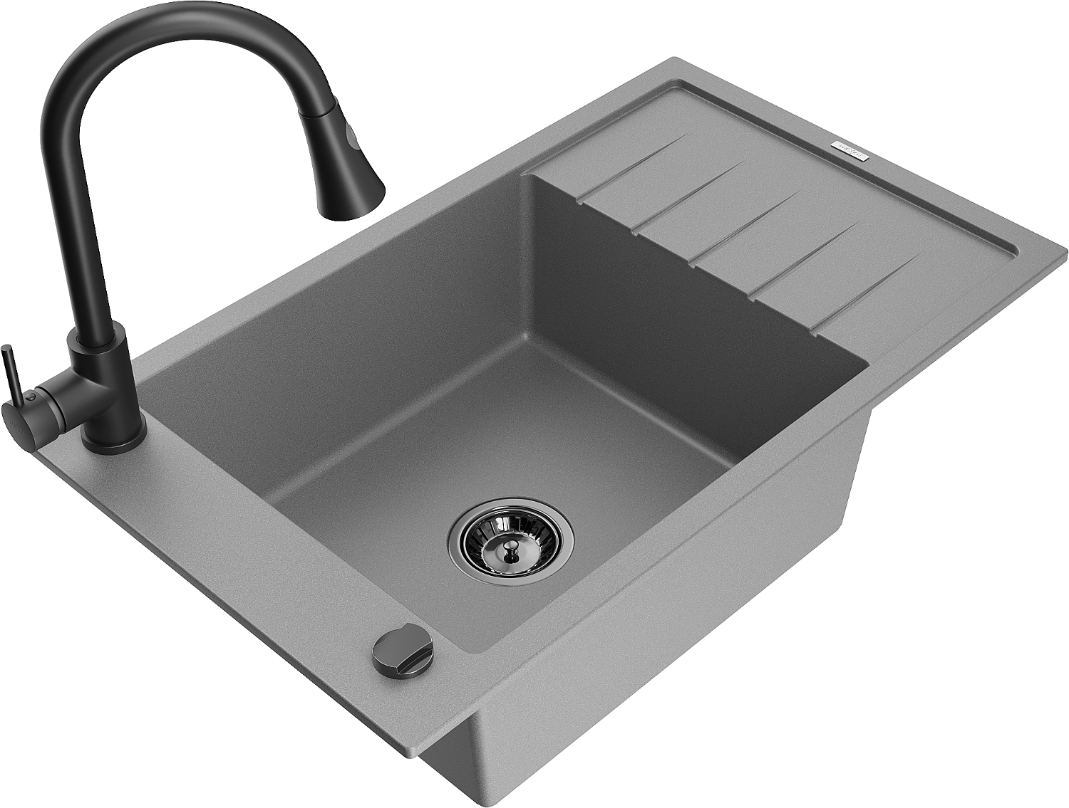 Mexen Elias Graniittinen 1-allas tiskiallas valutustasolla ja keittiöhanalla Elia, harmaa - 6511-71-670101-70-B