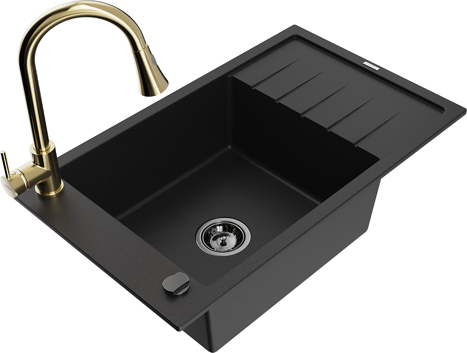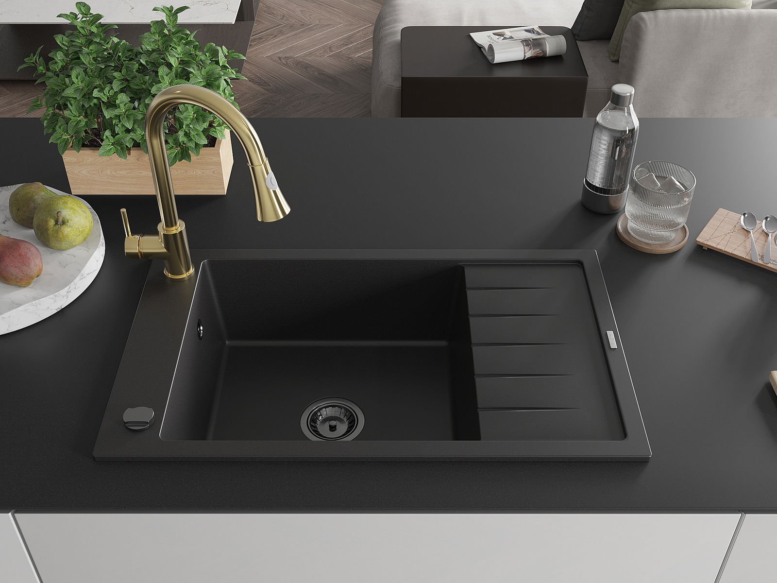 Mexen Elias graniittinen 1-altainen tiskiallas valutustelineellä ja keittiöhanalla Elia, musta - 6511-77-670101-50-B
