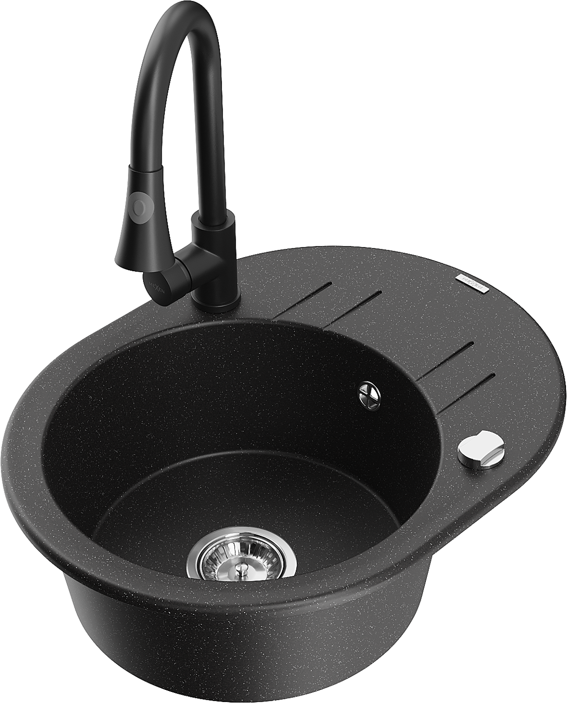 Mexen Kevin Graniittinen 1-osainen tiskiallas valutustasolla ja keittiöhanalla Elia, musta/hopea metallinhohto