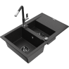 Mexen Gaspar graniittinen 1,5-altainen tiskiallas kuivaustasolla ja Flora-keittiöhana, musta täplikäs - 6507-76-670401-07-B
