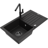 Mexen Pablo graniittinen 1-allas tiskipöytä kuivaustasolla ja Flora-keittiöhana, musta pilkullinen - 6510-76-670401-70-B