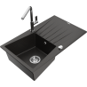 Mexen Cesar yksi-allas komposiittiallas valutustasolla ja Flora-keittiöhana, harmaa - 6514-71-670401-00