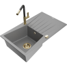 Mexen Cesar graniittinen tiskiallas, jossa on 1 lokero, kuivausteline ja Flora-keittiöhana, musta pilkullinen